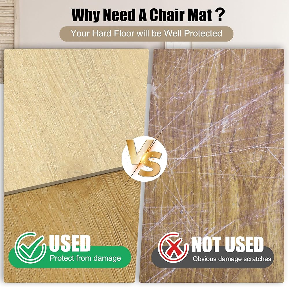 👍أفضل حماية للأرضيات الصلبة: لن تتشقق أو تتكسر سجادة كرسي المكتب السميكة والمتينة هذه مع حماية الأرضيات حول المكتب ومناطق عمل الكمبيوتر من عجلات العجلات المتدحرجة وأرجل الكراسي والأحذية. مثالية للخشب الصلب والفينيل والبلاط والمزيد.