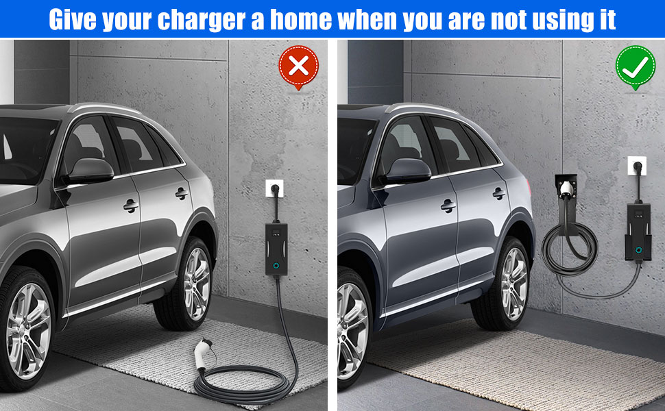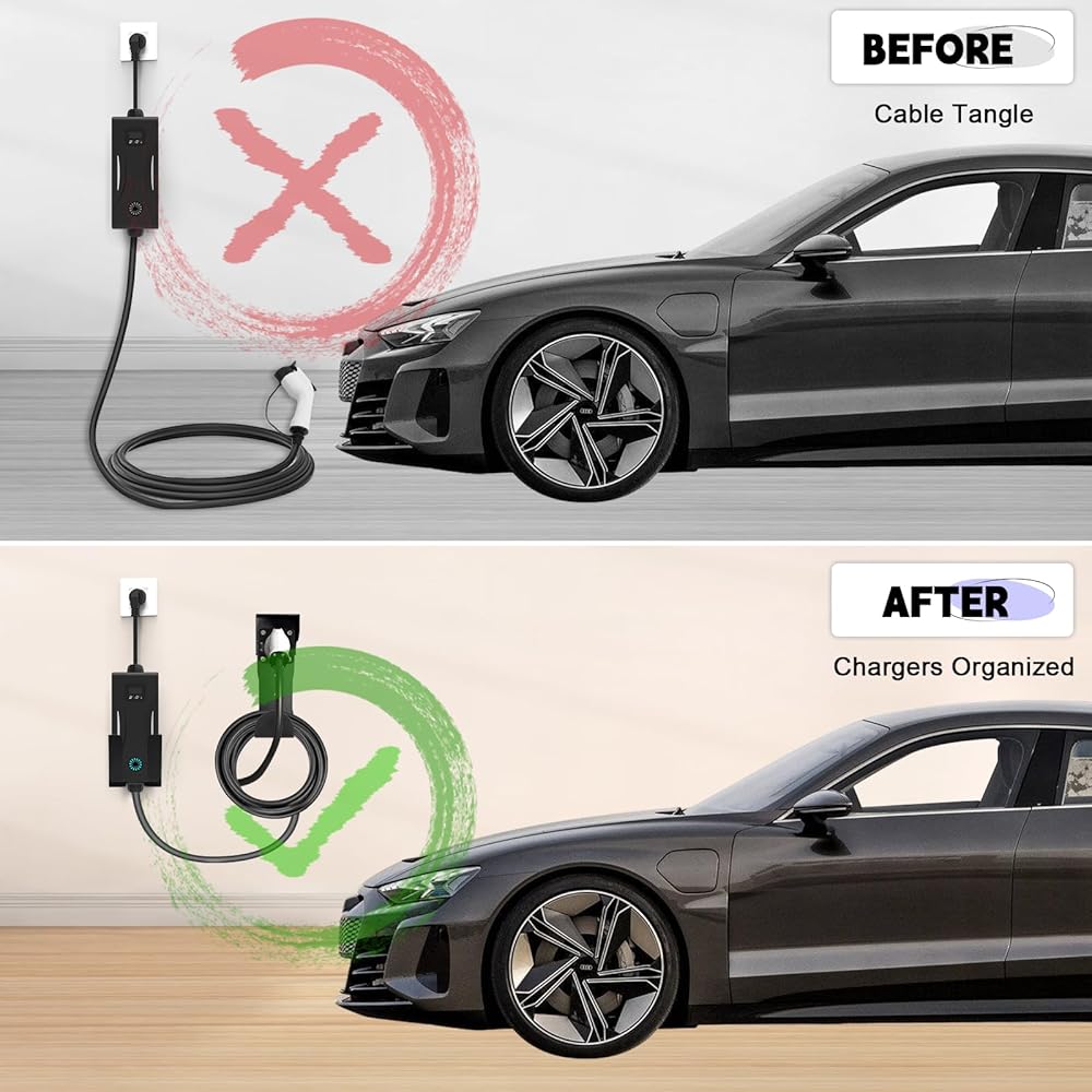 تطبيق واسع: متوافق تمامًا مع جميع موصلات J1772. يعد منظم كابل شحن السيارة الكهربائية وقاعدة الفوهة حماية جيدة لشواحن J1772 وTesla القياسية