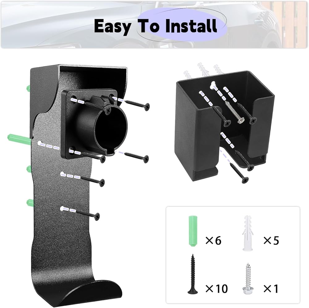 سهلة التركيب: 1. حدد الموقع الثابت. 2. قم بثقب الثقوب وقم بتثبيت البراغي لتثبيت منظم كابل شحن EV وحافظة الفوهة على الحائط. 3. أدخل فوهة شحن EV وانقر فوقها ثم ضع الكابل على الخطاف، انتهى الأمر