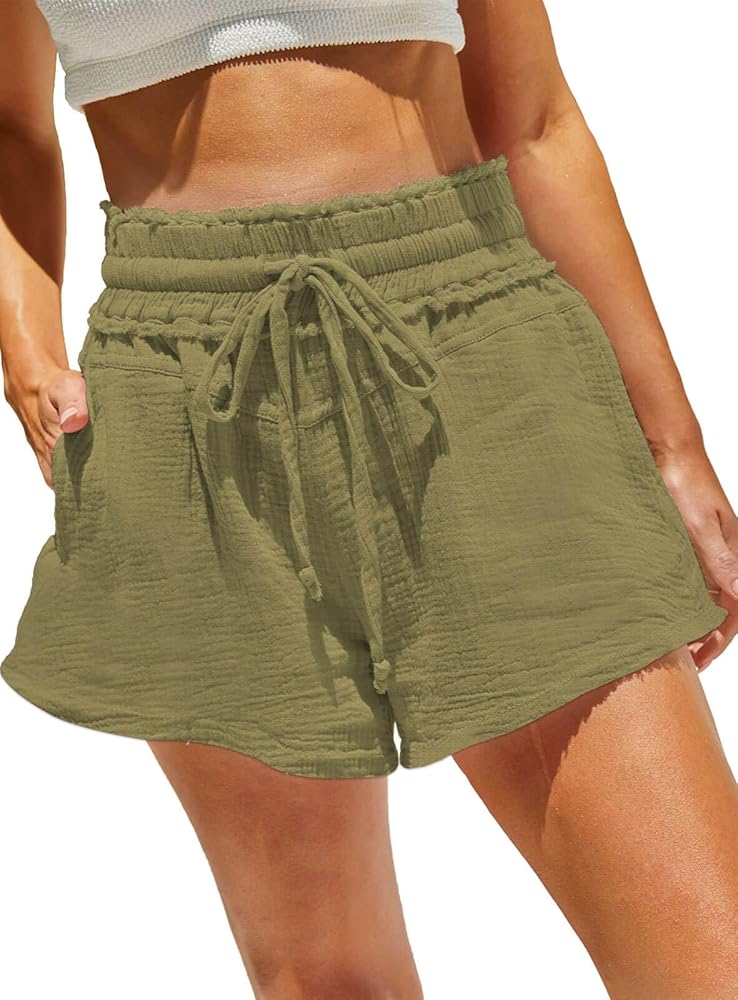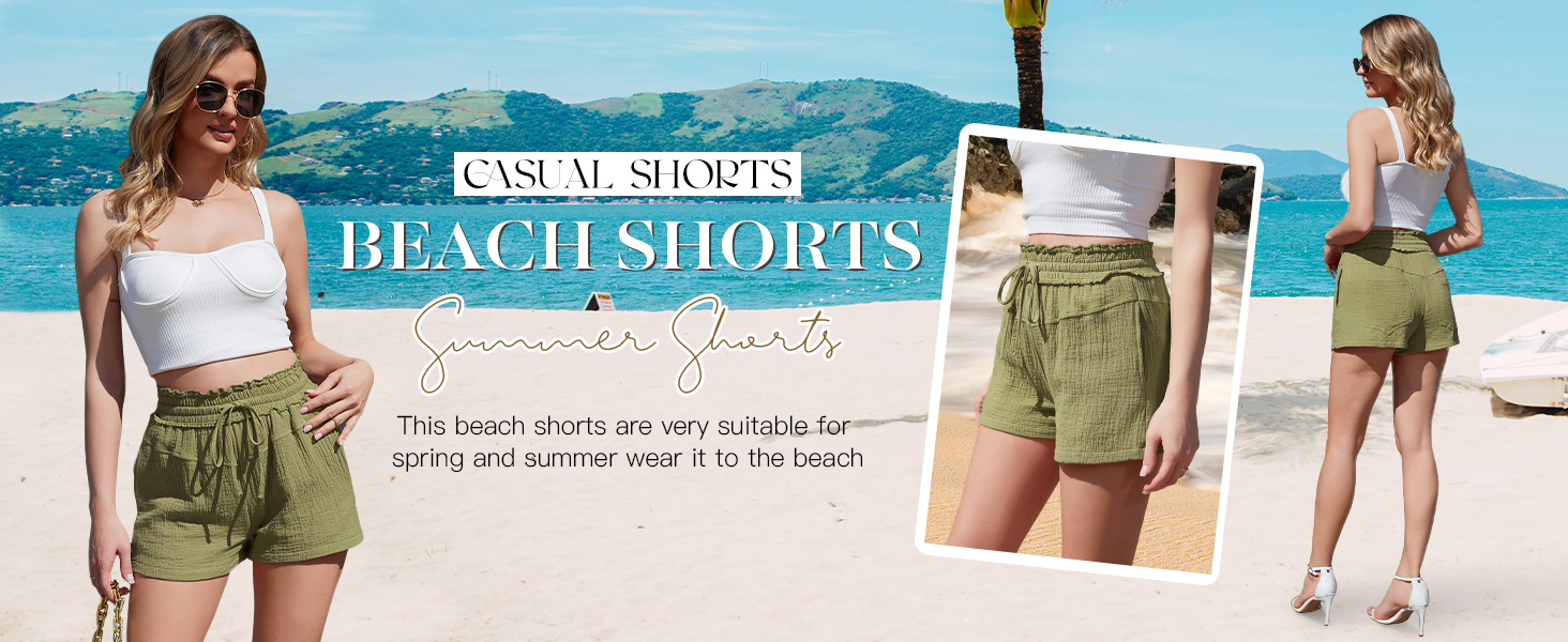 【الخامة: شورت نسائي مصنوع من 95% قطن + 5% بوليستر، وهو ناعم وخفيف الوزن ومريح وجيد التهوية. شورت الشاطئ هذا مناسب جدًا للربيع والصيف، ارتديه على الشاطئ. يمكن غسله في الغسالة ولا يبهت مما يسهل العناية به.