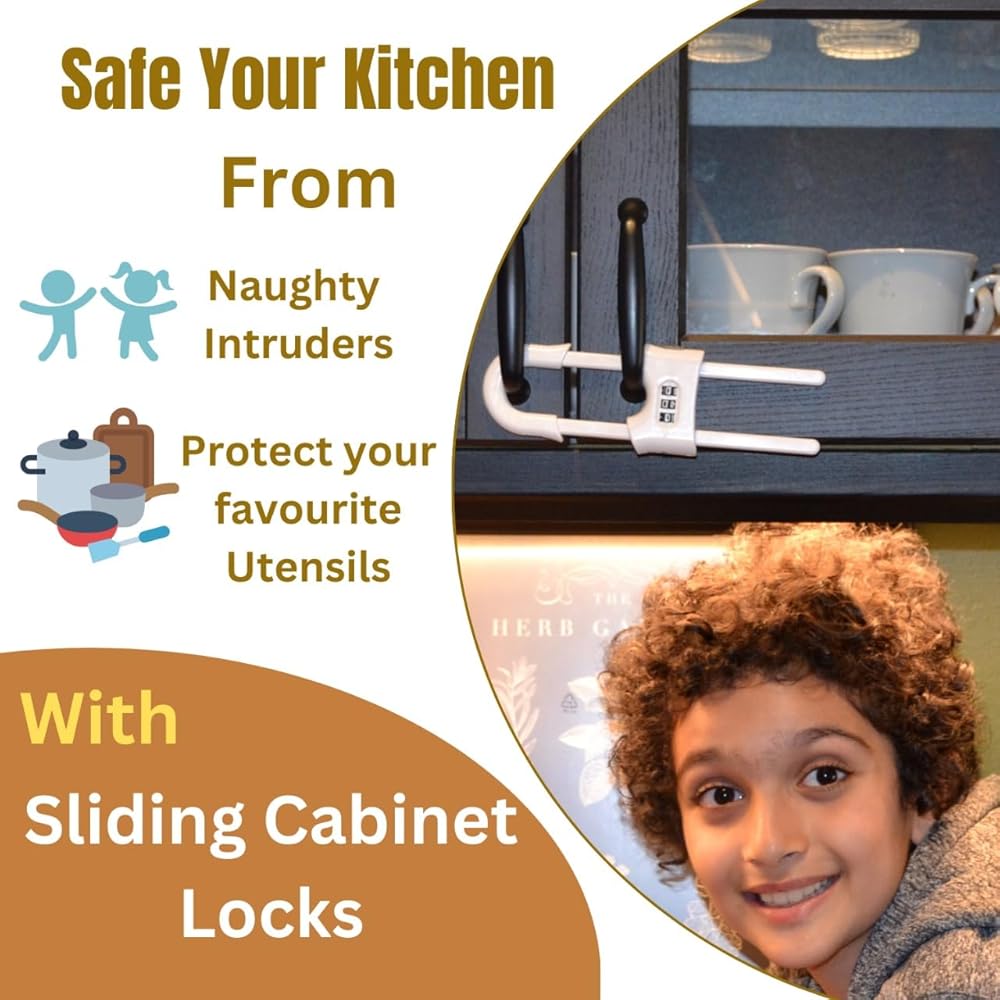 🔒 [تصميم أمان متقدم]: قم بحماية أطفالك بأقفال الخزانة المنزلقة على شكل حرف U، الآن مع رمز مركب مكون من 3 أرقام لتوفير الأمان القابل للتخصيص. مثالي لمنع الوصول إلى العناصر الخطرة في المطابخ والحمامات والمزيد.