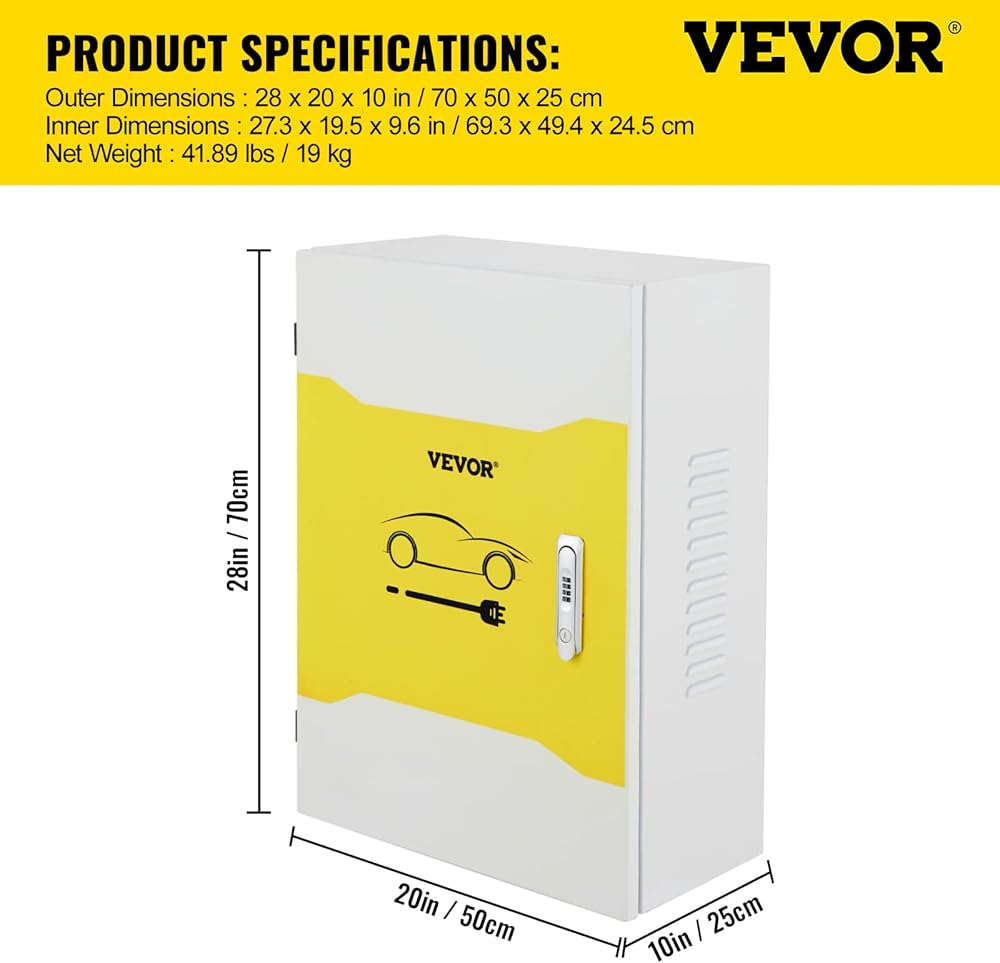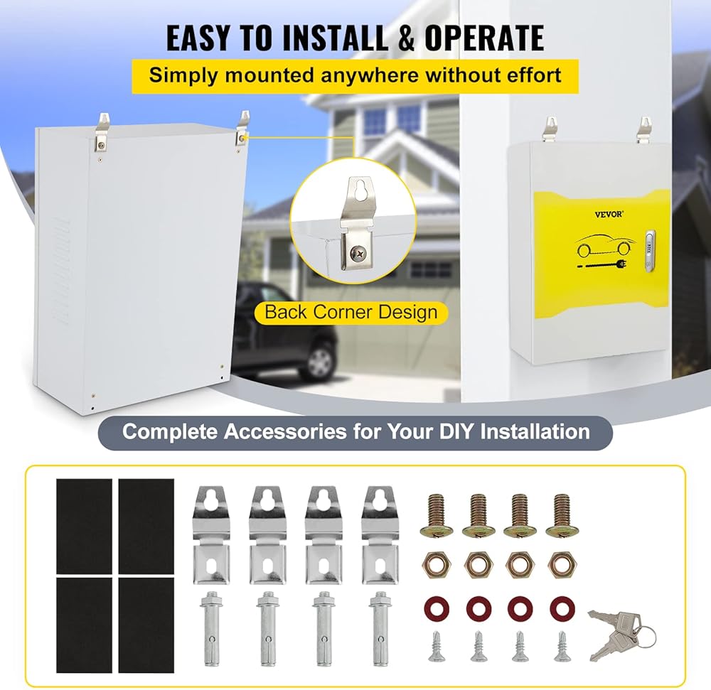 A combination lock design, high-strength hinges, and IP32 protection level are all used to secure your EV charger/home charger station. Get ready for all-around great protection that can't be beaten, and Choose a name you can trust, VEVOR.