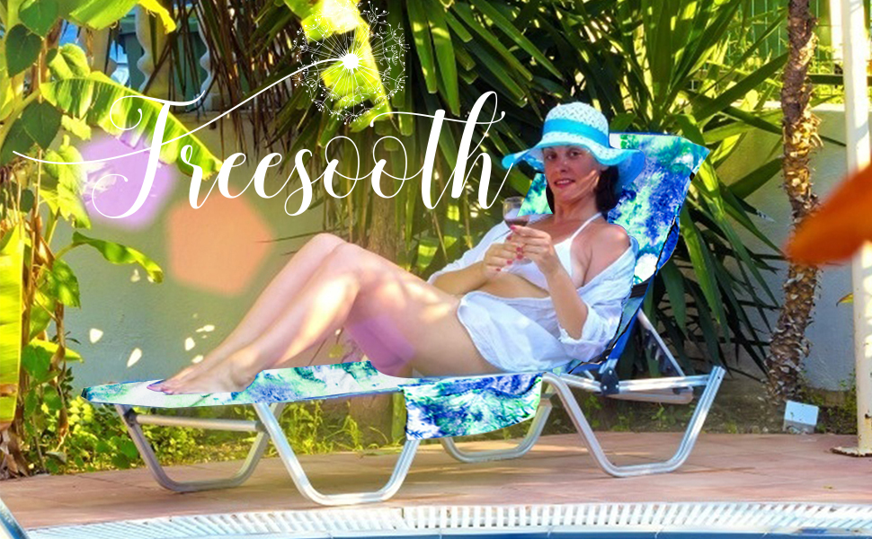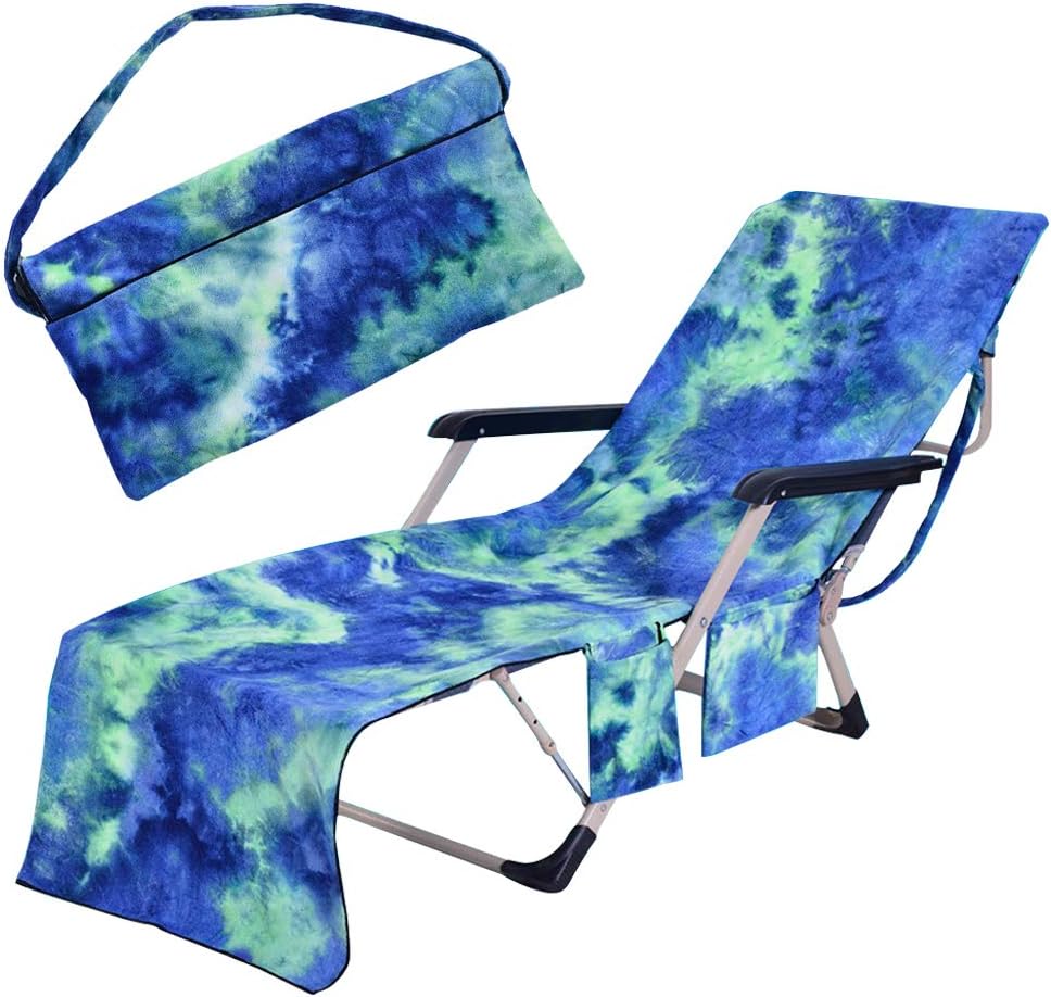 قفل مرن بدون انزلاق: تحتوي منشفة كرسي الشاطئ على أربعة أدوات تثبيت مرنة في الأربع لتوصيل الكرسي. تحافظ على المنشفة من الانزلاق إلى أسفل كرسيك أثناء السباحة في حمام السباحة.