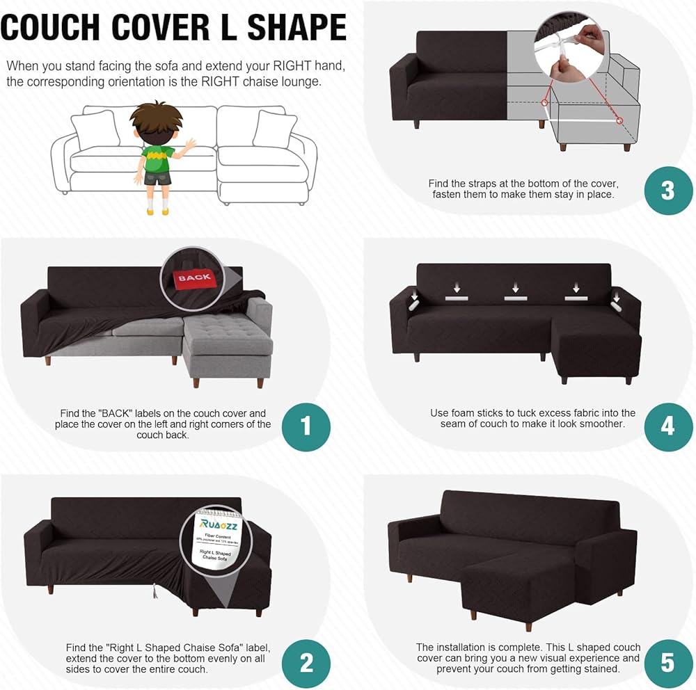 【حماية 360 درجة】: أغطية الأريكة على شكل حرف L من Ruaozz مع تصميم تغطية كاملة يغلف أريكتك على شكل حرف L بسلاسة. يمكنها حماية أريكتك من جميع الجوانب. تغطية البقع والعيوب من الحياة اليومية. يمنع التآكل والتمزق اليومي، ويتجنب الاستثمار المكلف في الأثاث الجديد. خيار رائع للمنازل التي بها أطفال وحيوانات أليفة.