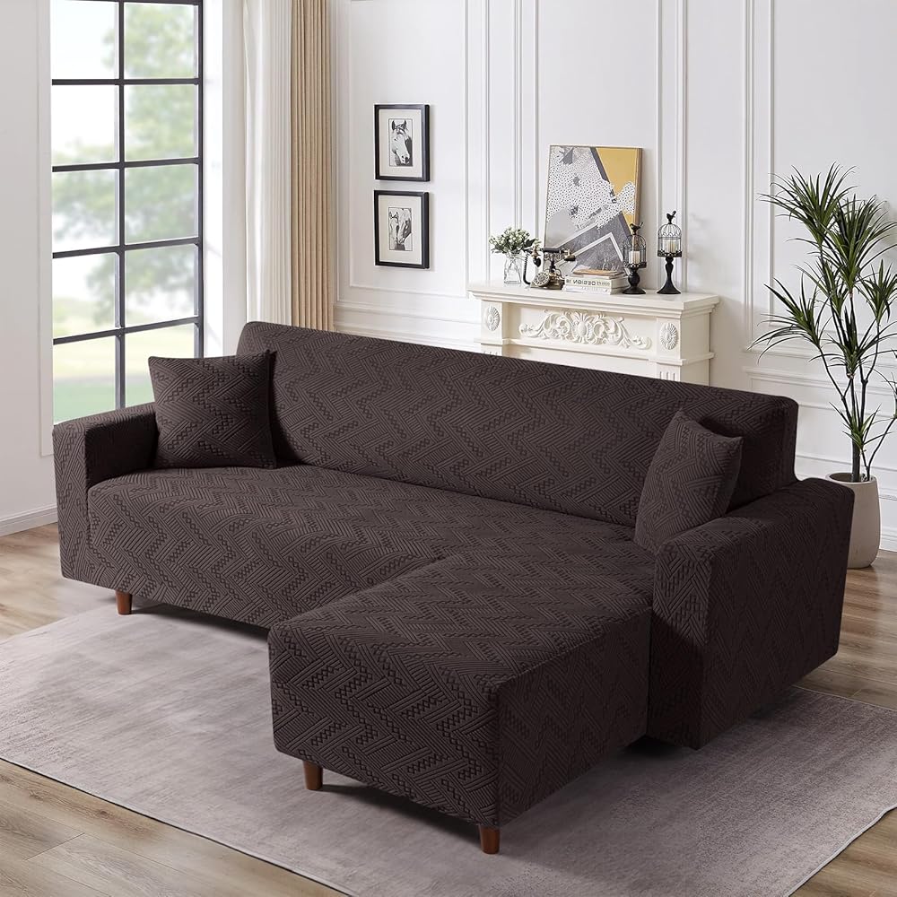【نسيج ممتاز】: أغطية الأرائك على شكل حرف L مصنوعة من 88% بوليستر و12% ألياف لدنة بنمط منقوش حديث. القماش ناعم وقابل للتنفس ومرن للغاية. نوفر أيضًا غطاءين إضافيين للوسائد مقاس 40*40 سم بنفس النمط والقماش. مع غطاء الأريكة Ruaozz على شكل حرف L لخلق مظهر مخصص وفاخر للأريكة على شكل حرف L. (غطاء الأريكة هذا على شكل حرف L حاصل على براءة اختراع).