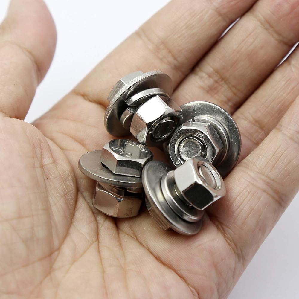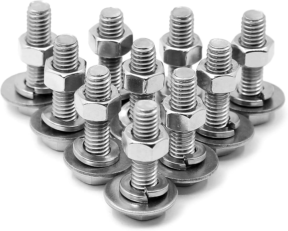 10PCS Bolts + 10PCS hex nuts + 10PCS Flat washers + 10PCS Lock washers