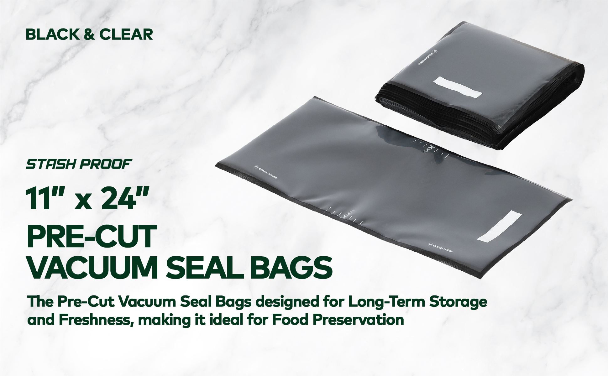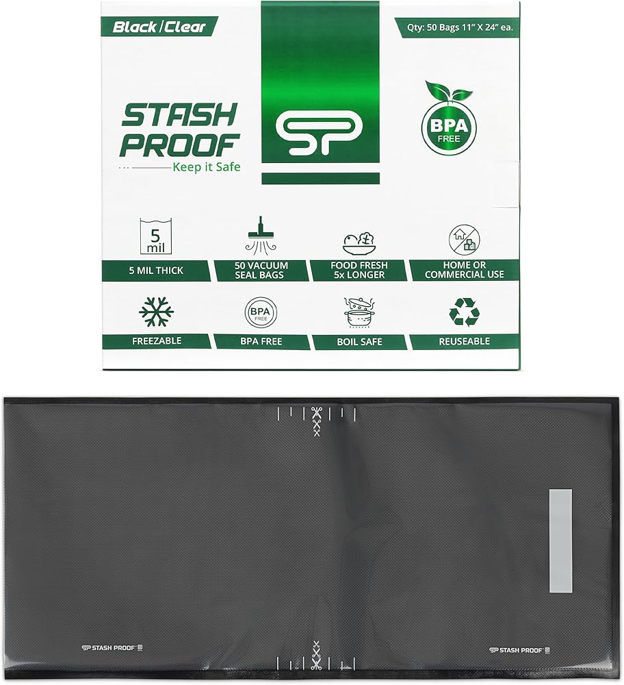 أكياس مانعة للتسرب مقاومة للتفريغ مقاس 27.94 سم × 60.96 سم (50 قطعة) 5 مل (أسود وشفاف) - حافظة طعام من الدرجة التجارية خالية من مادة BPA للتخزين، وفيديو Sous Vide، وحقيبة حفظ الطعام لإعداد الوجبات