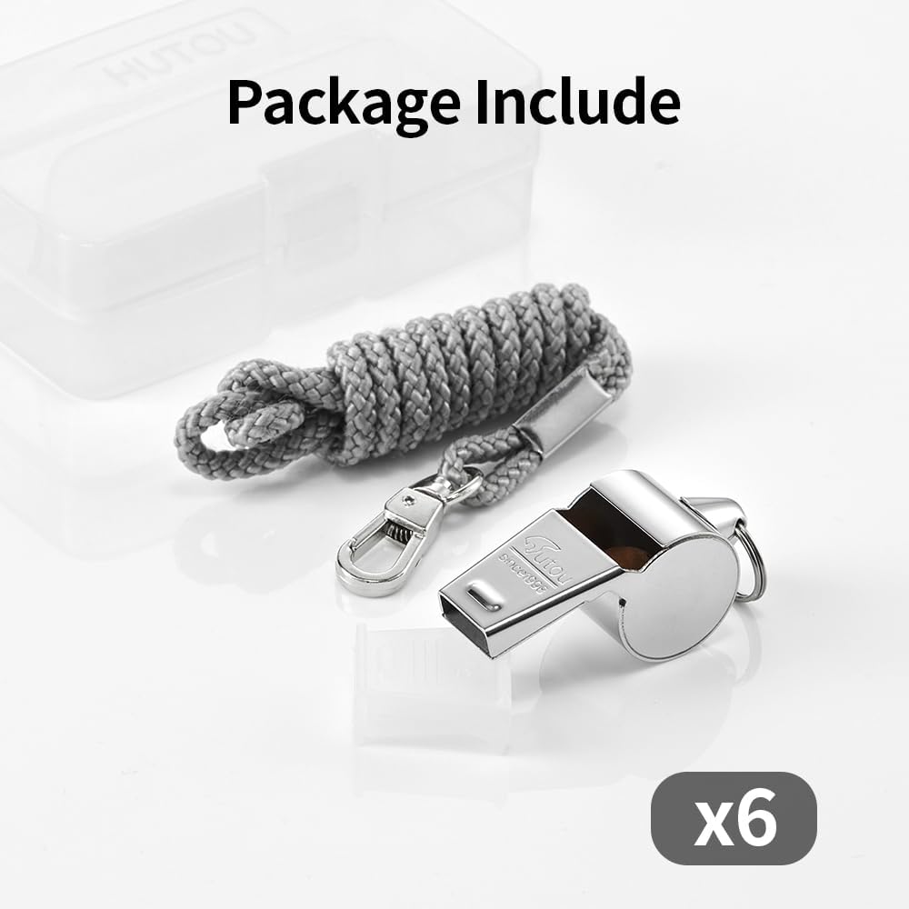صافرة هوتو، 6 عبوات من الصافرة الرياضية للمدرب من الفولاذ المقاوم للصدأ مع حبل، صافرة صوت عالية واضحة مثالية للمدربين والحكام والمسؤولين