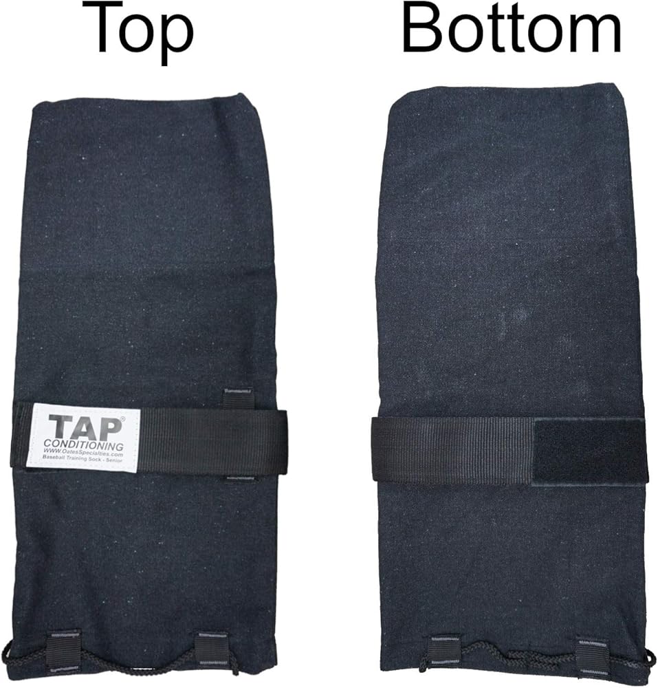 The TAP Baseball Training Sock allows an athlete to throw a ball in a confined space, inside or out. Players can throw regardless of weather conditions or availability of a training partner. Increases velocity Promotes good 'finish' Good warm-up tool The TAP Baseball Training Sock was developed to facilitate a modified ball hold program. The design of the device allows athletes to perform a full throwing motion with ball release in a confined area. The ability to release resolves mechanical inefficiencies associated with holding a weighted ball beyond the release point while enjoying benefits related to baseball holds. Developed under the guidance of Ron Wolforth and Randy Sullivan, the TAP Baseball Training Sock has provided solid results with athlete training and recovery. An excellent tool for developing posterior shoulder strength, it can also be effective for reinforcing efficient deceleration patterns. The Baseball Training Sock is made of heavy-weight fabric with more of the look of a bag than a sock to allow free movement of the hand releasing the ball. TheTraining Sock as it is commonly called is also known as' the 'Durathro Sock' and sometimes simply the 'Sock', as well as many other alias's such as the 'Mitt' and even the 'Oven Mitt'. This durable product was developed for weighted balls up to 21 oz. in weight. Instructions for use are not included. DURABLE PITCHING SOCK; Easily adjustable to securely fit on most arms with the adjustable straps; Built to last repetitive everyday use; No need to carry around a towel to warm up doing the towel whip drill IMPROVE THROWING MECHANICS AND VELOCITY; Promotes proper throwing mechanics; Get instant feedback after every throw; Increase velocity with proper use WARM UP AND ARM CARE; Get your arm ready before game time by using plyo balls weighted baseballs and real baseballs whether you are pitching or playing the field; Great for athletes working their way back from shoulder pain or injuries SOLO TRAINER; Abili