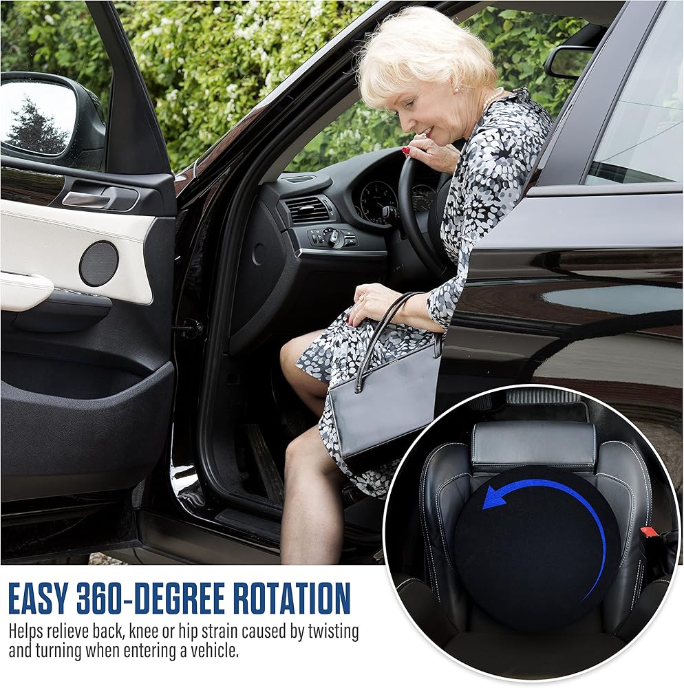 Effortlessly swivel in your seat and reduce hip and back pain when getting up from your chair or exiting your car (works best on non-bucket seats). The DMI Swivel Seat Cushion turns a full 360 degrees, making it easy to swing your legs in the right direction. The cushion gives you soft, customized comfort while you are seated. It also helps to reduce the pressure point sensitivity that can cause pain. Chronic pain sufferers will tell you that every extra movement can cause them discomfort. This cushion can minimize the stress on your back that occurs from twisting and turning to get out of your seat.