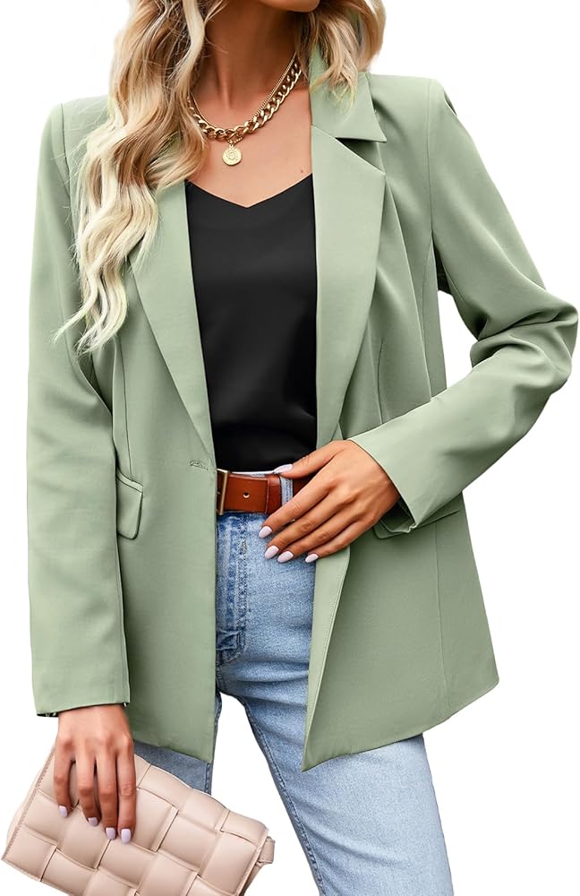 المزايا: سترة بليزر أساسية طويلة الطول للنساء، مع زر واحد للإغلاق وجيبين بغطاء.