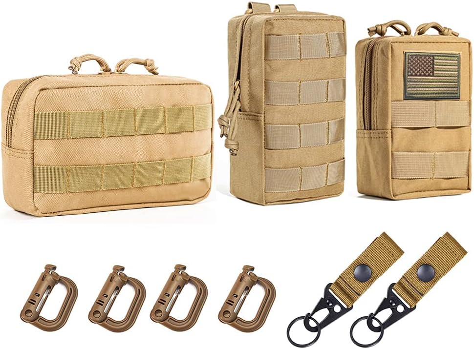 2Pack-Tan: 2 Molle Pouch, 4 Multipurpose D-ring, 2 Reflective Medic Patch