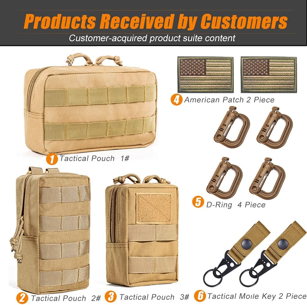 Molle Gear Pouch Purpose: Make it as a Great Attachment for Belt, Combat Vest, Tactical Backpacks or other Tactical Gears as Extra Exterior Pouch. 2 Pack Molle Pouches Cooperate with Each other, Ample space.