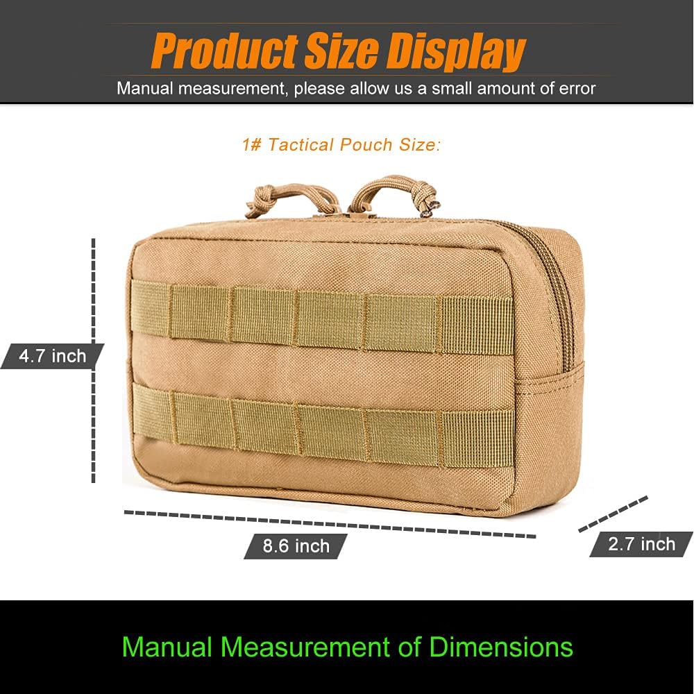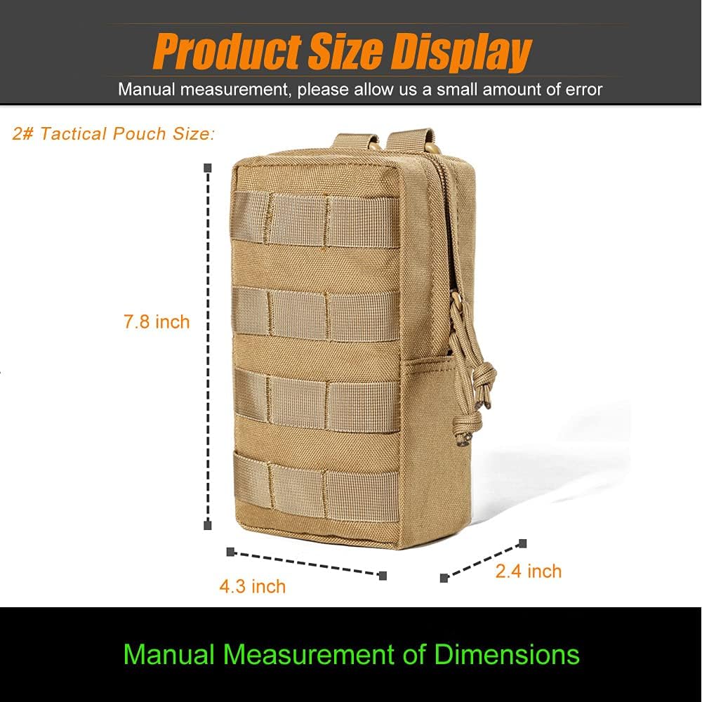 Molle Pouches Size: Diameter:7.8*4.3*2.4 inch, 6.3*3.9*2.7 inch