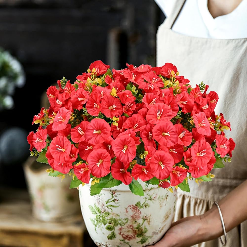 Artificial flowers for indoor outside.This product has upgraded and improved the leaves and flowers on the original basis,making the flowers more realistic and the leaves softer and fluffy.