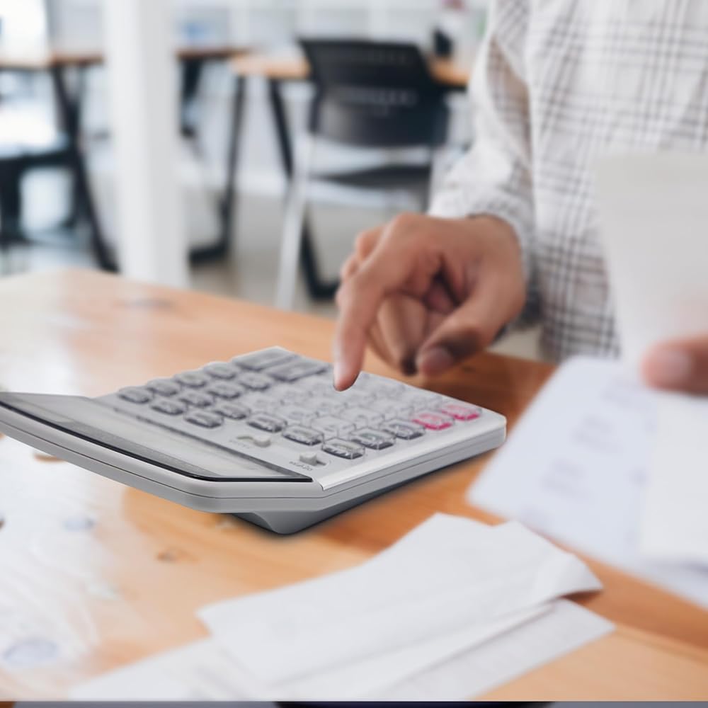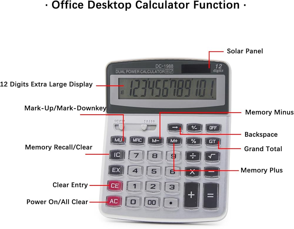 الطاقة المزدوجة وتوفير الطاقة: الطاقة هي البطارية والطاقة الشمسية (بطارية AA واحدة غير متضمنة). التصميم الشمسي يجعل الآلة الحاسبة يمكنها العمل في النهار أو حتى في الضوء الخافت بدون بطارية.