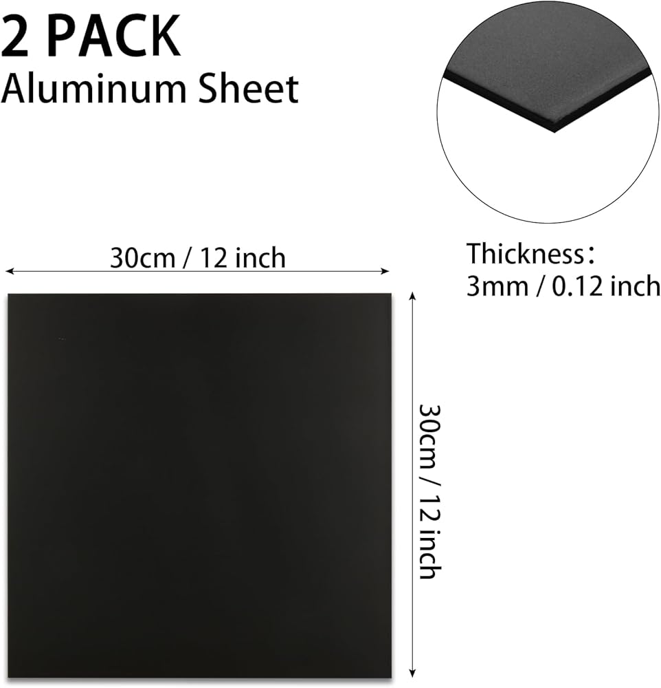 • 【Package Includes】 Each package includes 2 pack aluminum sheet, and the size of each sheet is 30 x 30 cm / 12 x 12 inch (L x W) with a thickness of 3mm / 0.12 inch. Besides, the front and back of the metal sheet have a layer of anti-scratch protective film, which needs to be taken off before use.