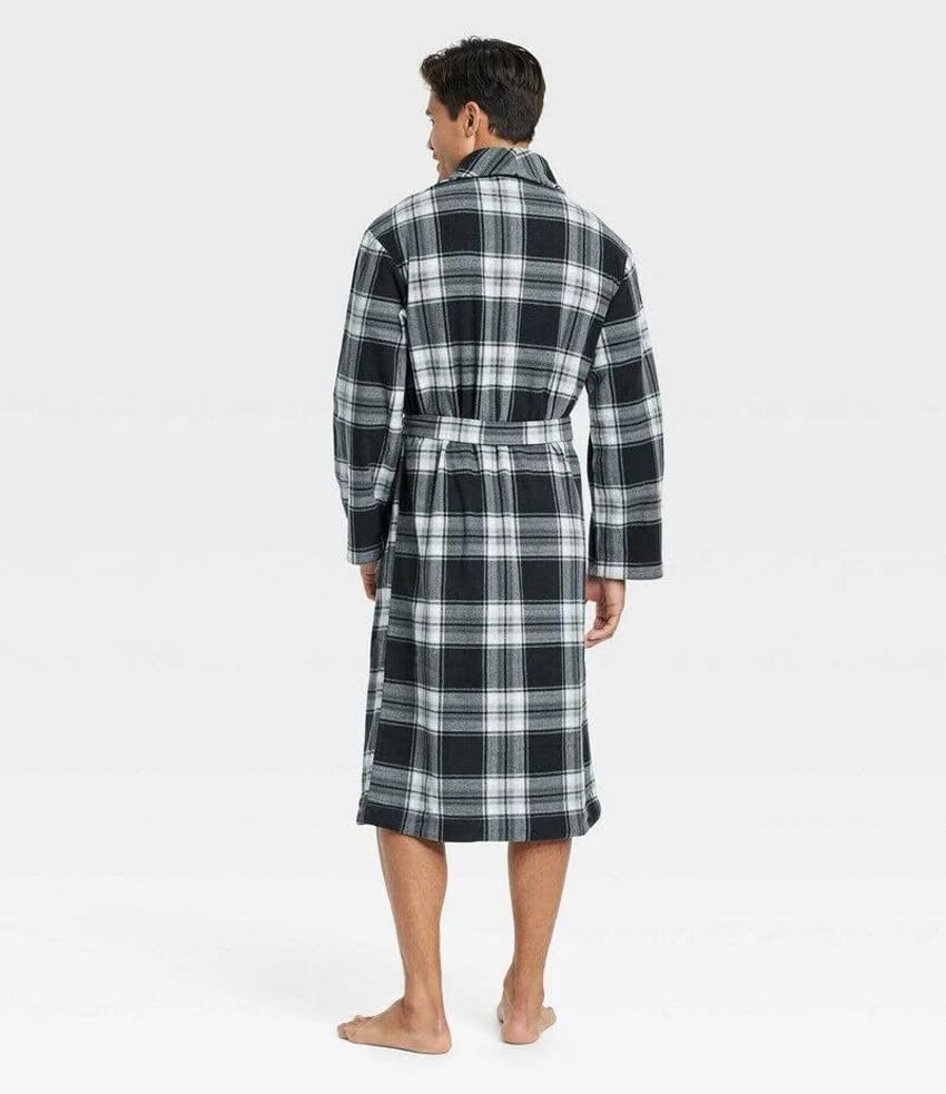Stepping out of the shower or wrapping up against the chill, you'll appreciate the comfort of this Men's Plaid Microfleece Robe in Burgundy from Goodfellow and Co . Fashioned in midweight microfiber fabric in a relaxed fit, this long-sleeved, calf-length robe has a rolled hem, open front and split neckline that can be closed with the inner tie and included sash belt, while the patch pocket is perfect for your cell phone or other small necessities.