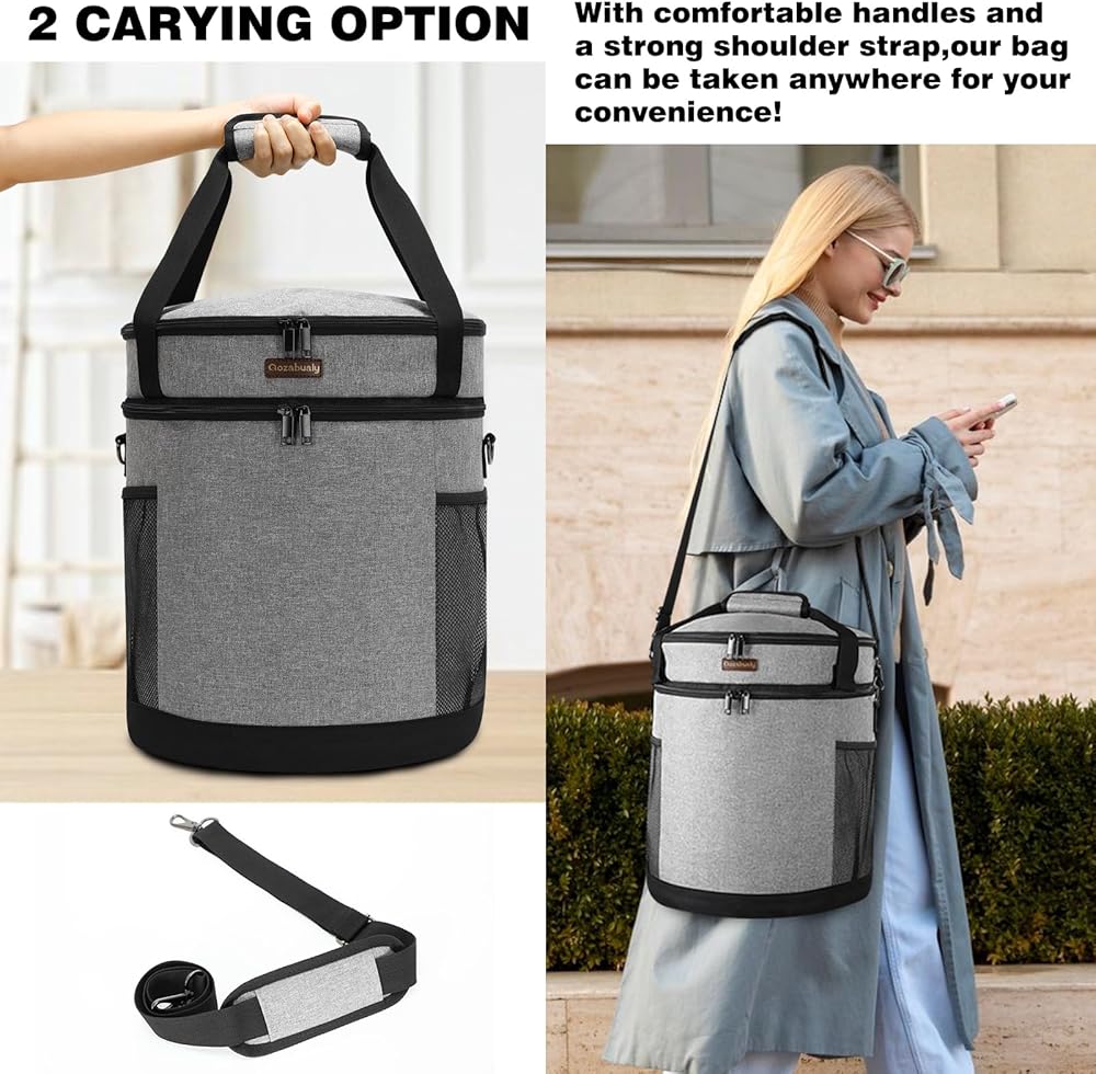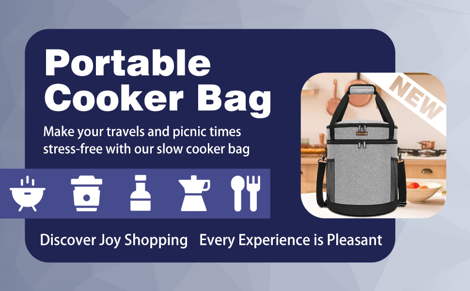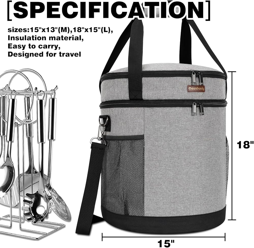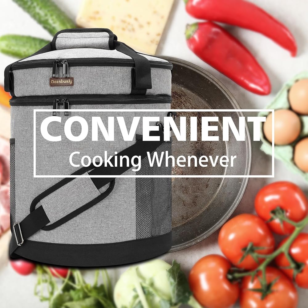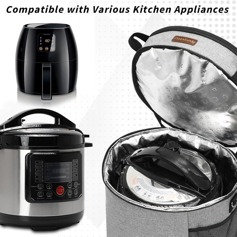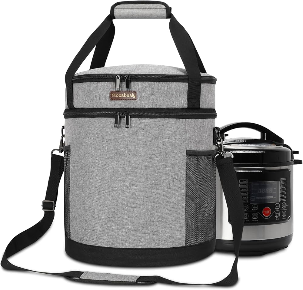 أكياس الطبخ البطيئة من كوزابوالي، حقيبة حمل من طبقتين للوعاء الفوري سعة 6-8 كوارت، حقيبة سفر خفيفة الوزن لطباخ الضغط مع حجرة علوية بسحاب (الحقيبة فقط، رمادي)