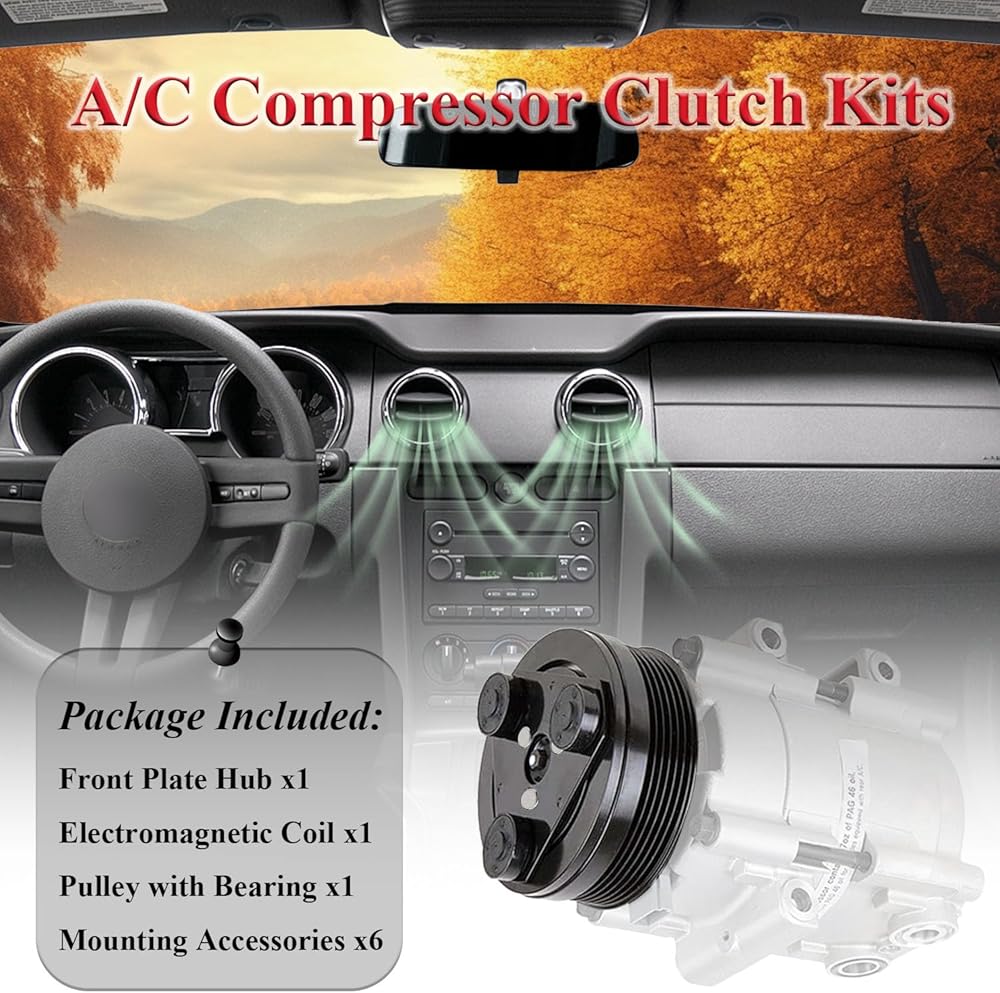 【Vehicle Fitment】AC Compressor Clutch Kit Fit for 1996 1997 1998 1999 2000 2001 2002 2003 2004 2005 2006 Ford Mustang 8 CYL 4.6L.
