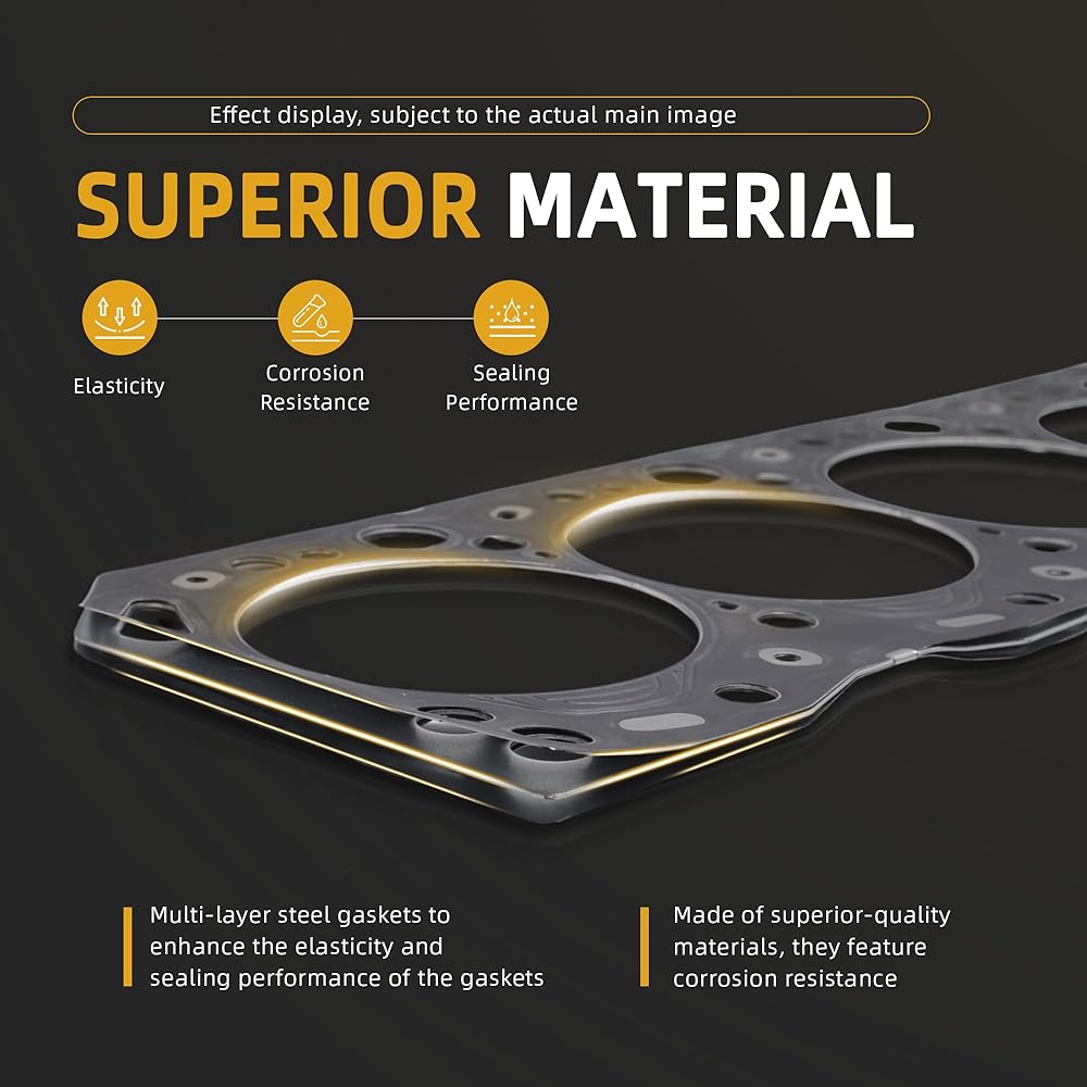 ◀ إغلاق ممتاز --- يمكن لمجموعة حشيات أسطوانة المحرك أن تغلق بشكل فعال المبرد والزيت والهواء في الأسطوانة، للقضاء على مسارات التسرب، والسماح للمحرك بالعمل بثبات.