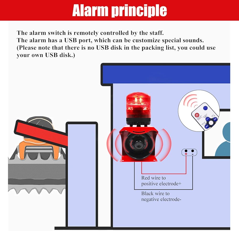 • 4. يوجد منفذ USB في عاكس الضوء الخاص بالإنذار، يمكنك استخدام USB الخاص بك (غير مدرج في قائمة التعبئة) لاستبدال صوت التنبيه.