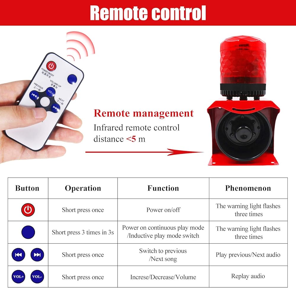 • 2. صوت التنبيه مرتفع جدًا، ويمكن تعديل الصوت عن طريق جهاز التحكم عن بعد، حتى 120 ديسيبل.