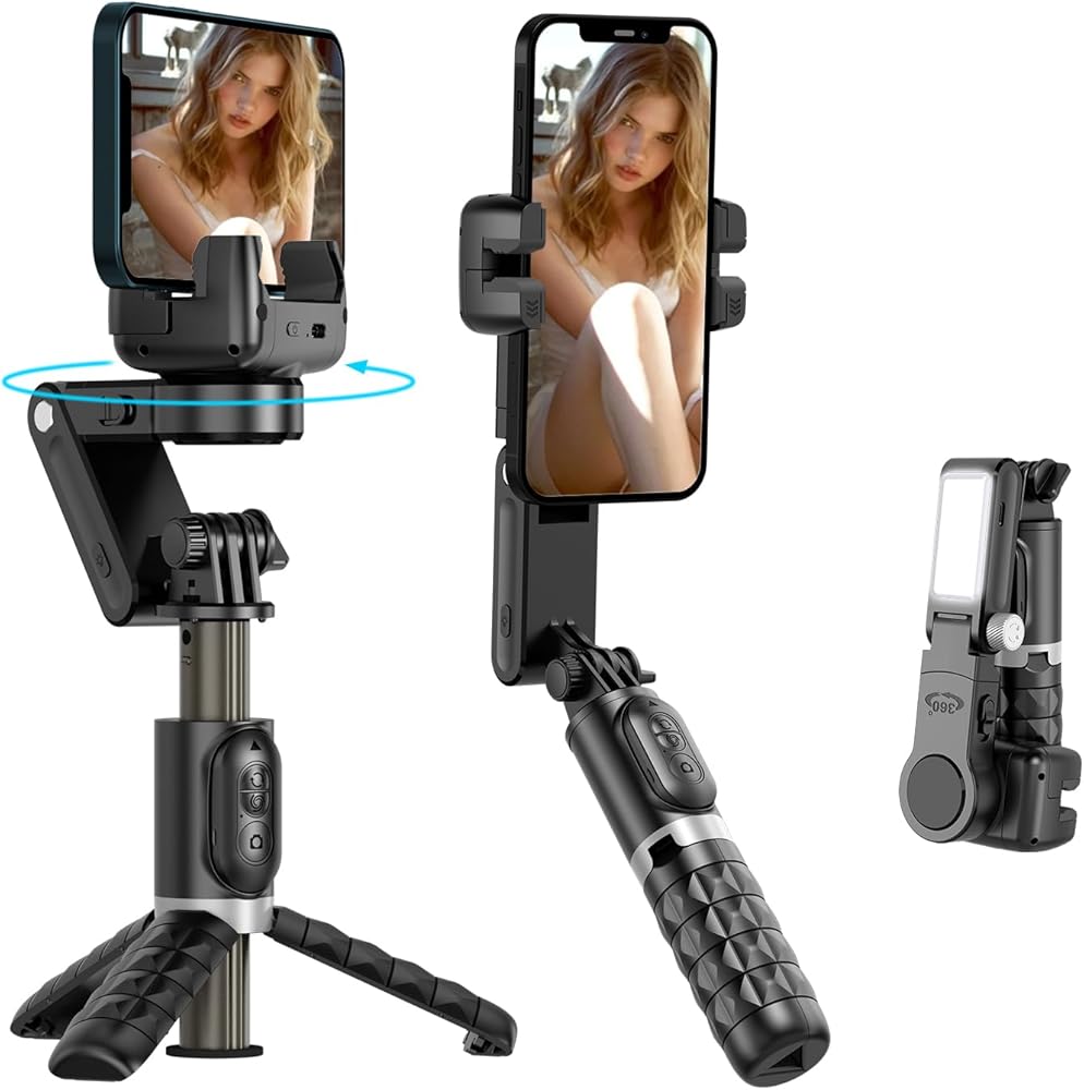 مثبت انحراف Korecase ثنائي المحور للهواتف الذكية مع حامل ثلاثي عصا سيلفي قابل للتمديد، حامل تتبع تلقائي للوجه بزاوية 360 درجة مع ضوء ملء وجهاز تحكم عن بعد لاسلكي لمدونات الفيديو، يوتيوب، تسجيل فيديو تيك توك