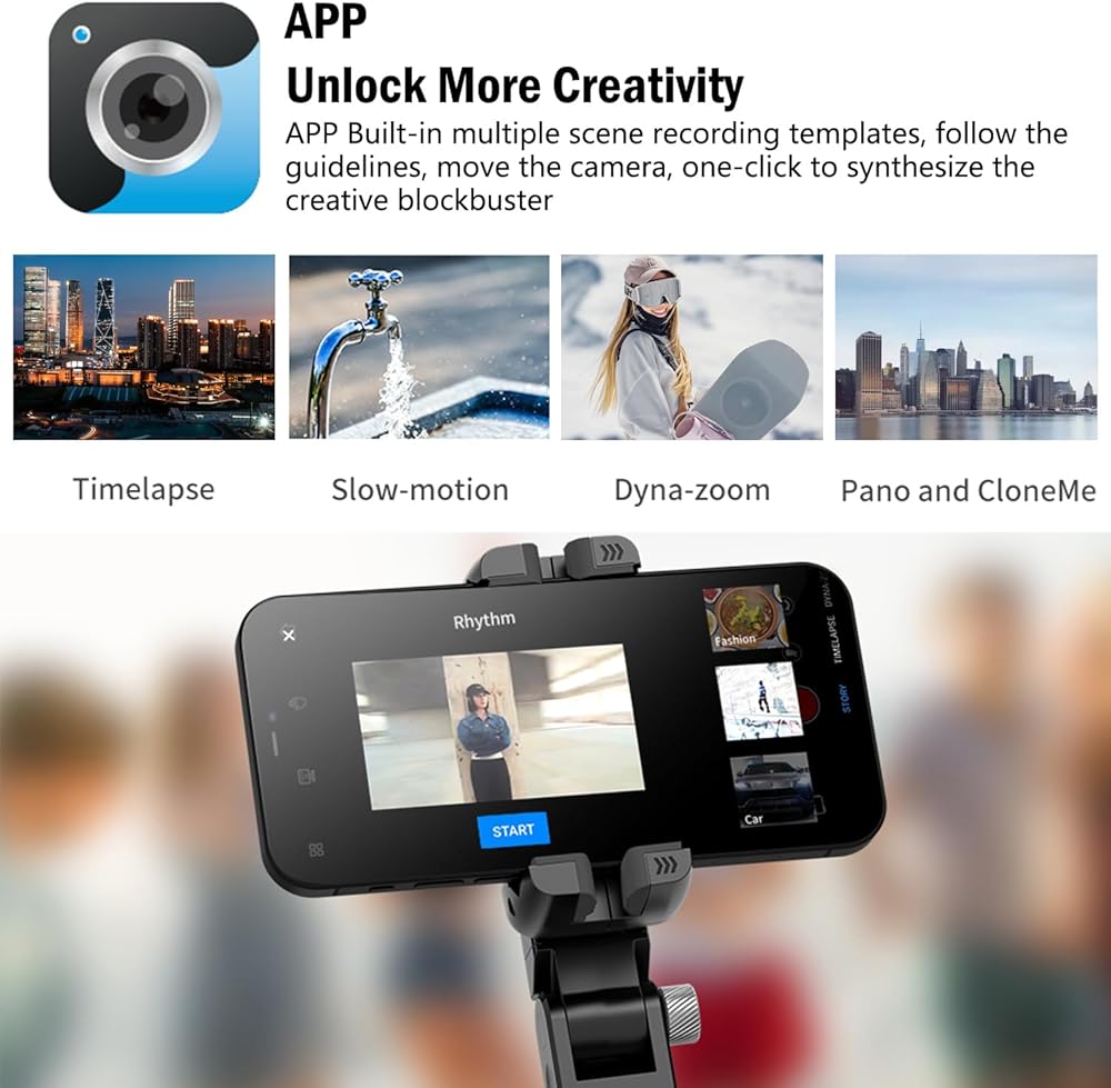 【Sincere Customer Service 】Stabilizer Selfie Stick supports IOS & Android, APP has detailed video tutorials, easy to use for newbies. If there is any problem in the use process, please feel free to contact ALLW, we will do our best to provide you with a pleasant shopping experience, you are always our first.