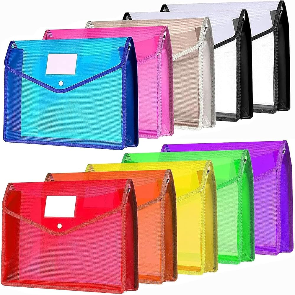 مجلدات ملفات بلاستيكية بحجم الحروف، 10 قطع A4 مظاريف حفظ الملفات قابلة للتوسيع مقاومة للماء مع منظم مستندات للإغلاق المفاجئ بوليستر ملون شفاف، محفظة للمكتب/الأعمال/المدرسة