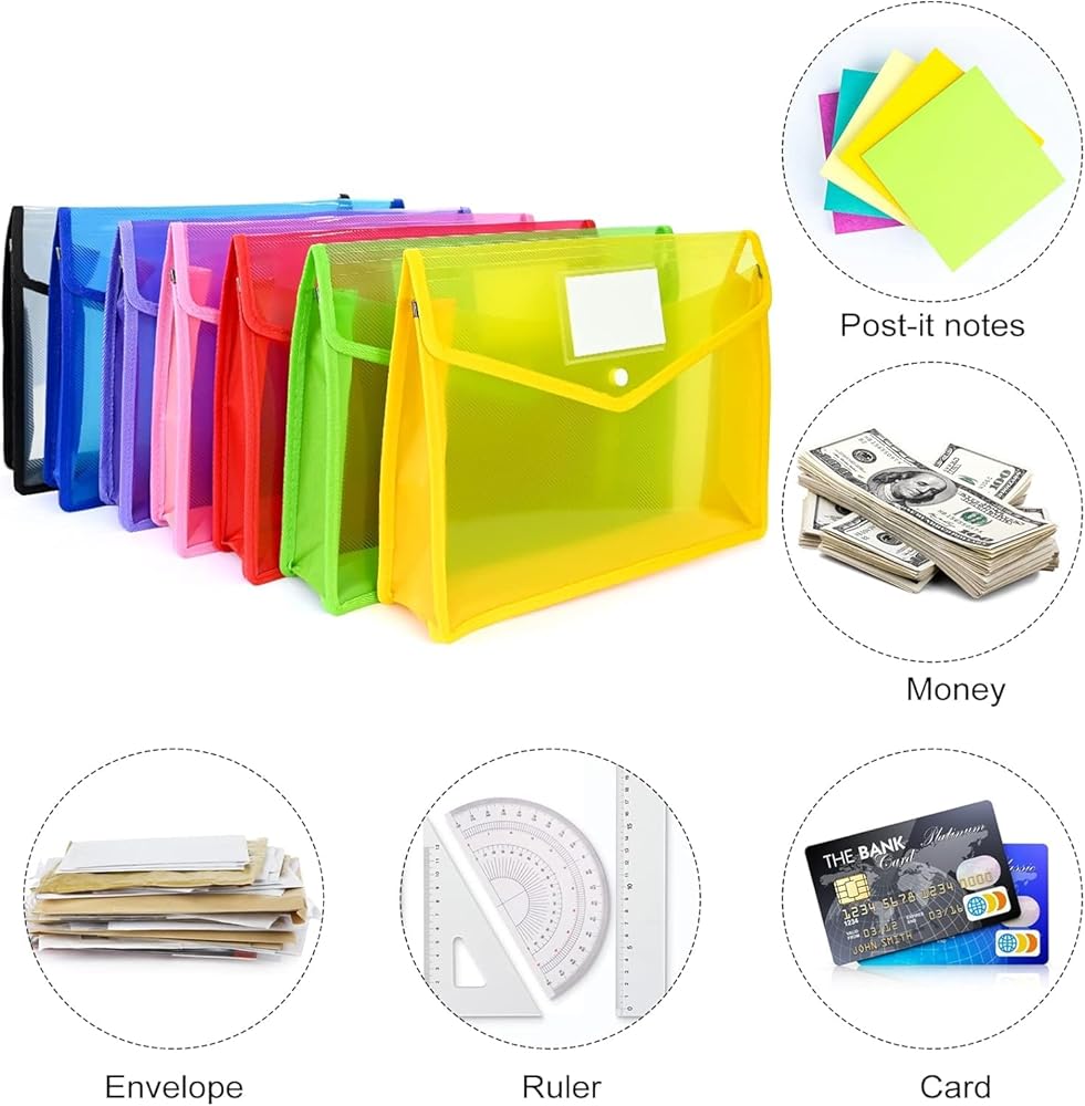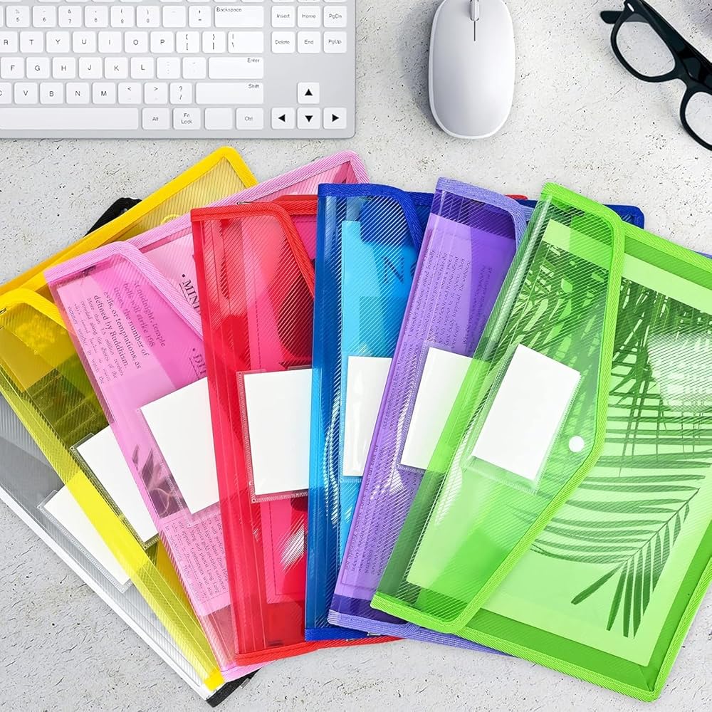 • 【تصميم حميم】: حافظة بلاستيكية مزودة بإغلاق سريع مزودة بفتحة لبطاقة العمل لتمييز الملفات بسهولة. هذه المجلدات مصنوعة من البلاستيك المضلع الشفاف الثقيل في الأمام والخلف والأعلى. الجوانب والجزء السفلي مصنوعان من مادة تشبه النايلون والتي تتمدد بسهولة وتتميز بالمتانة. تعمل الألواح القماشية ذات الحواف المخيطة على حماية أصابعك من الخدوش، كما تحافظ المجلدات البلاستيكية المزودة بإغلاق سريع على مستنداتك آمنة وتمنعها من السقوط.