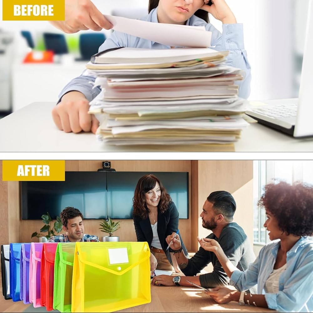 • 【سعة تخزين كبيرة 】: 19 بوصة × 10 بوصة × 3.14 بوصة. بسعة 800 ورقة، تعتبر حقيبة الملفات مناسبة لحفظ المستندات وتخزينها يوميًا؛ 9 ألوان زاهية: الأحمر، الأخضر، البرتقالي، الأزرق الداكن، الأسود، الأرجواني، الأصفر، الوردي، الرمادي، سهلة التنظيم والتمييز من خلال ألوان مختلفة. فهي شفافة، مما يسهل رؤية ما هو موجود في الملف.