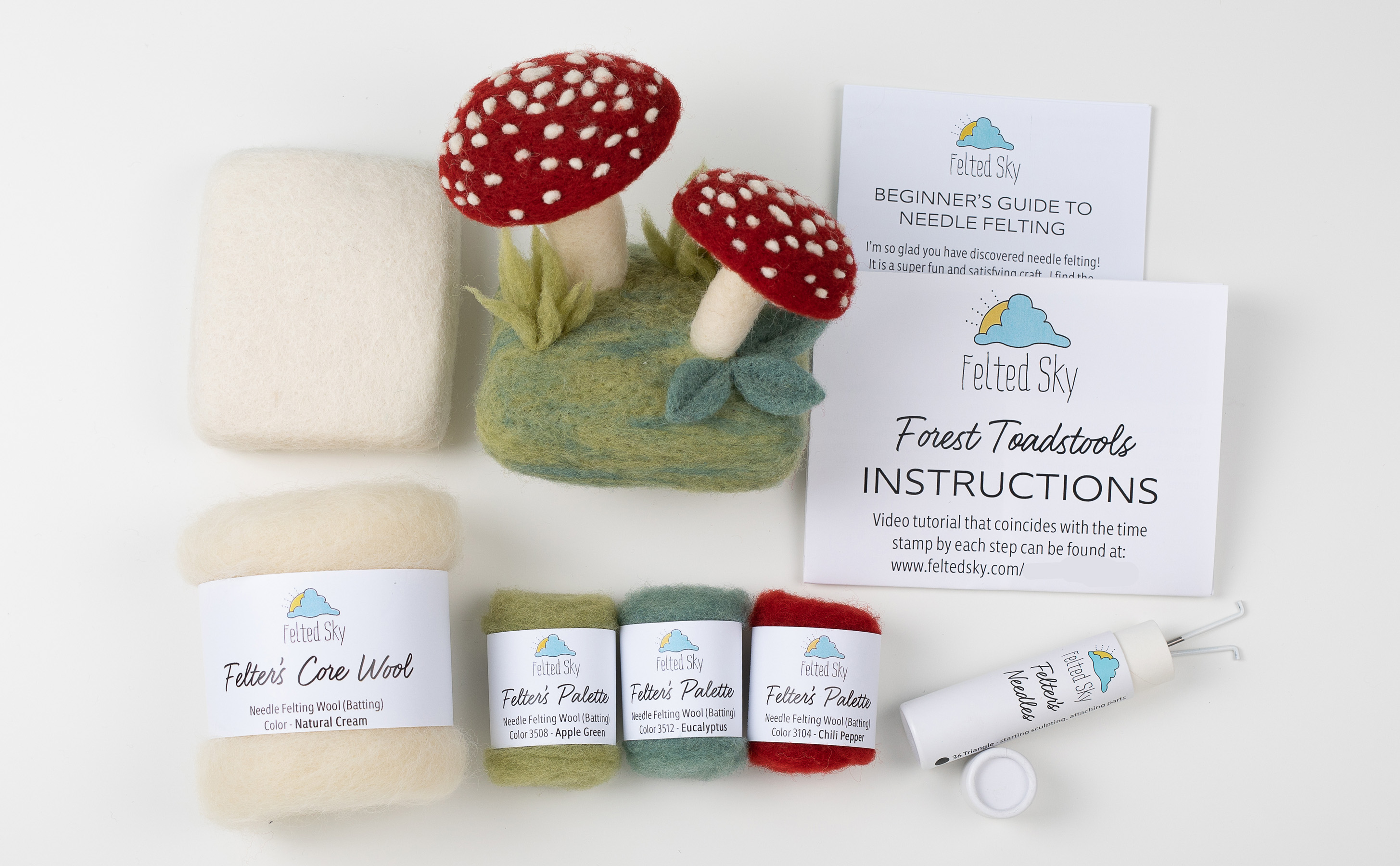 هل أنت جديد في مجال التلبيد بالإبرة؟ هذا هو فن الألياف الذي يستخدم إبرة خاصة وصوف الأغنام لعمل صور مسطحة أو منحوتات ثلاثية الأبعاد. إن حركة الطعن المتكررة والطبيعة الملموسة لهذه الحرفة تجعلها ممتعة وتخفيف التوتر. تعد هذه المجموعة أول مشروع رائع لأن تعليمات الفيديو والمواد عالية الجودة الخاصة بنا تجعل من السهل البدء.