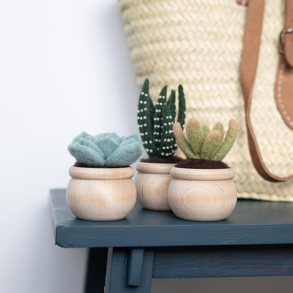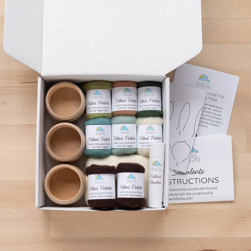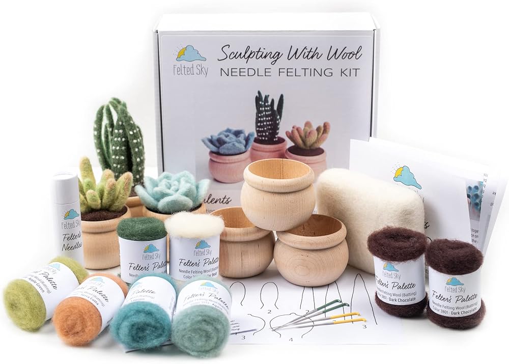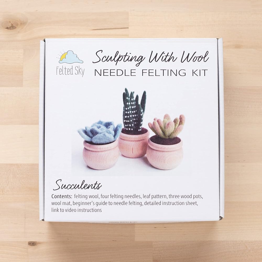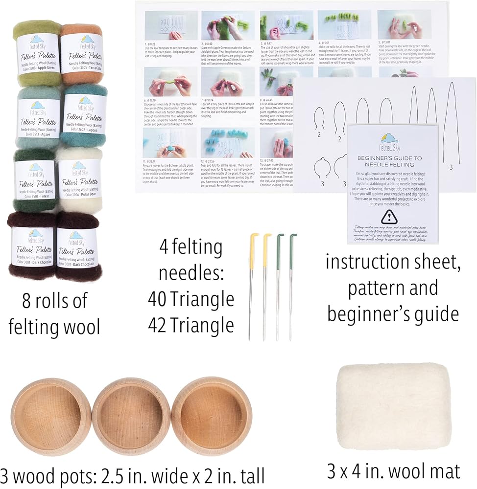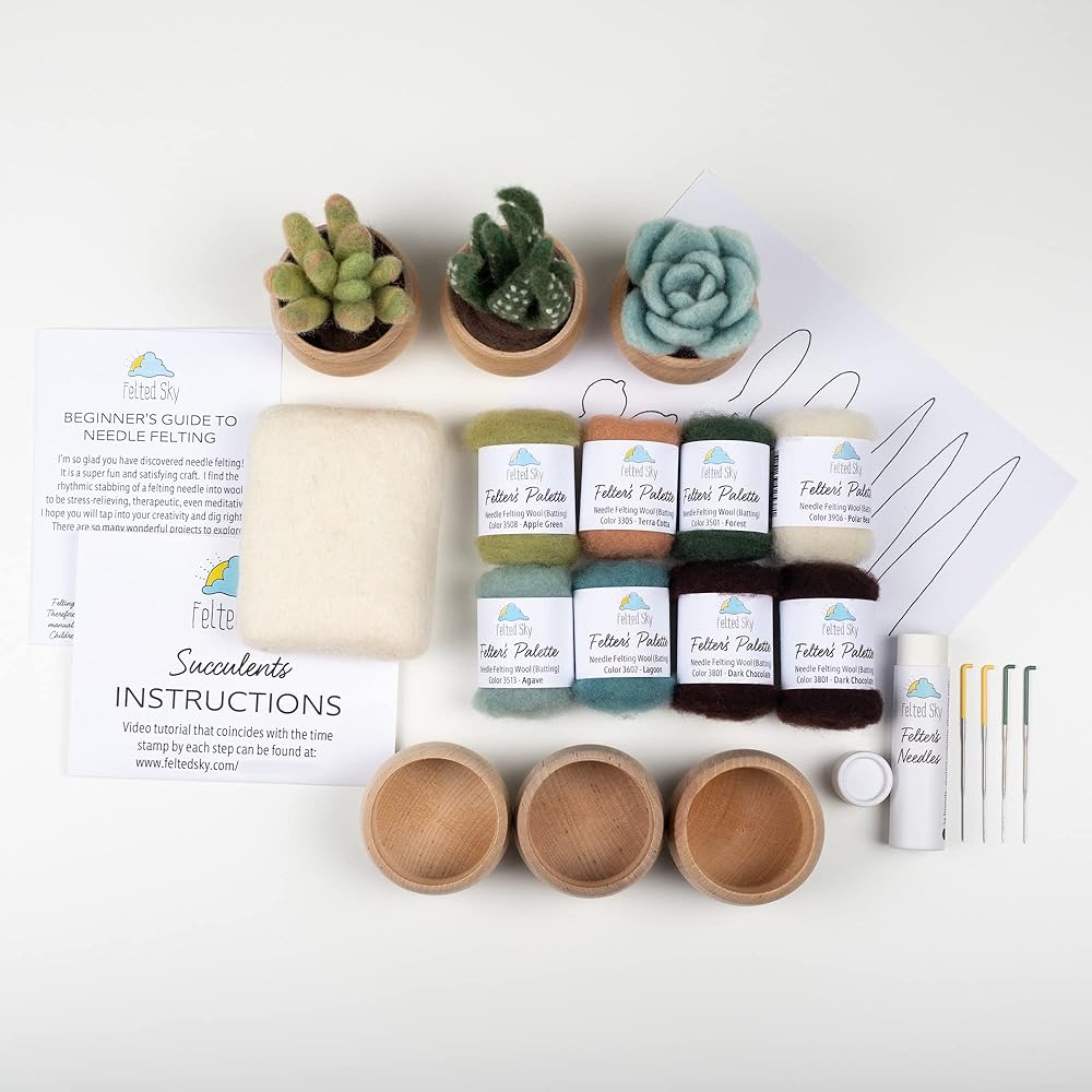 مجموعة أدوات التلبيد بإبرة السماء العصارية مع تعليمات الفيديو | تعلم كيفية النحت بالصوف | مناسب للمبتدئين للبالغين والمراهقين | تتضمن كل شيء لإنشاء 3 نباتات صناعية لطيفة