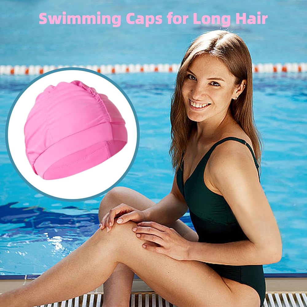 4 قطع من قبعات السباحة المصنوعة من القماش الزهري للنساء، قبعات سباحة مطاطية متينة وغير مقاومة للماء، قبعة استحمام للفتيات ذات الشعر الطويل