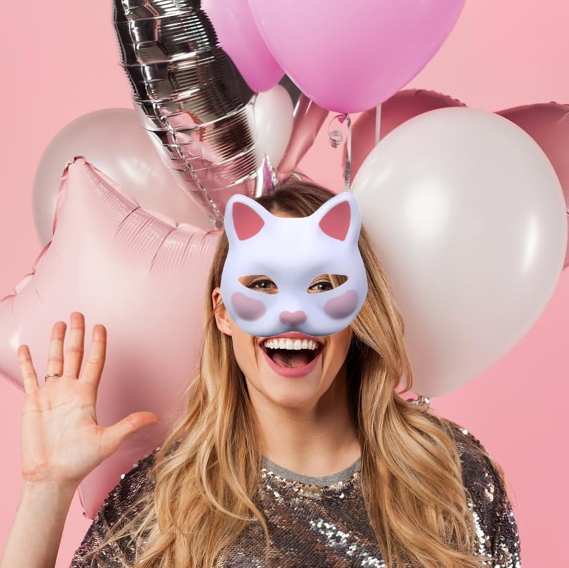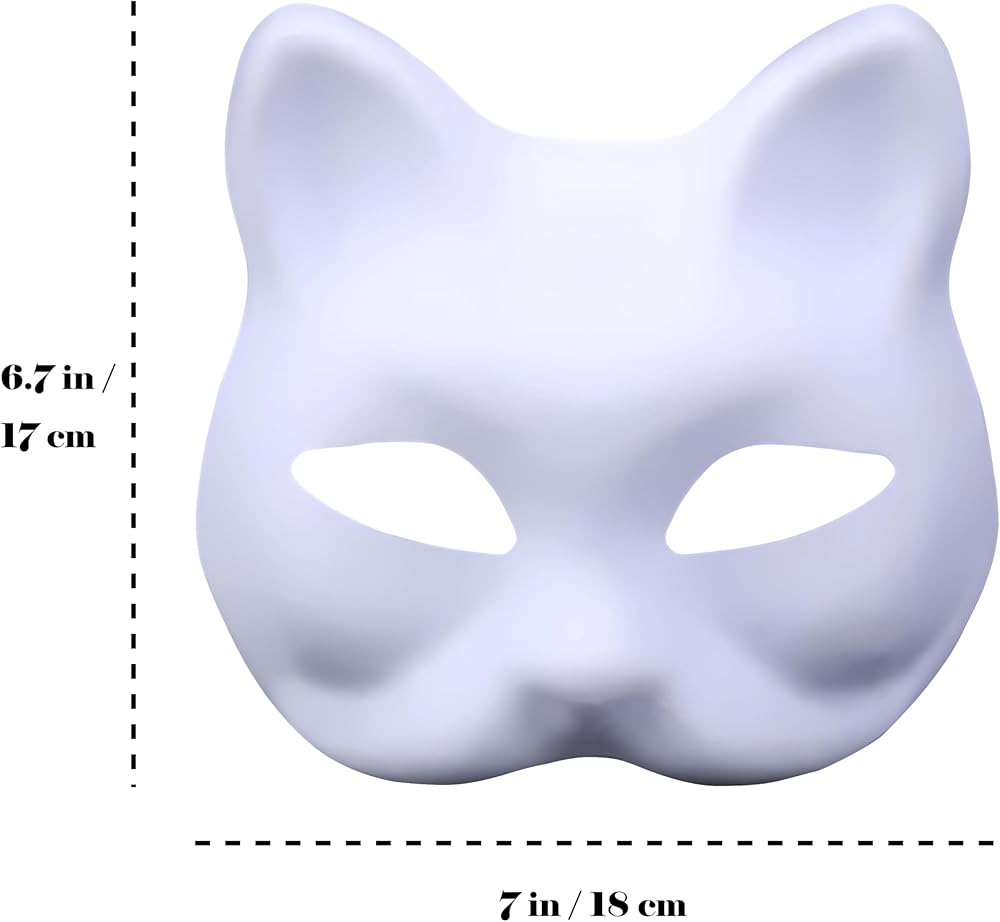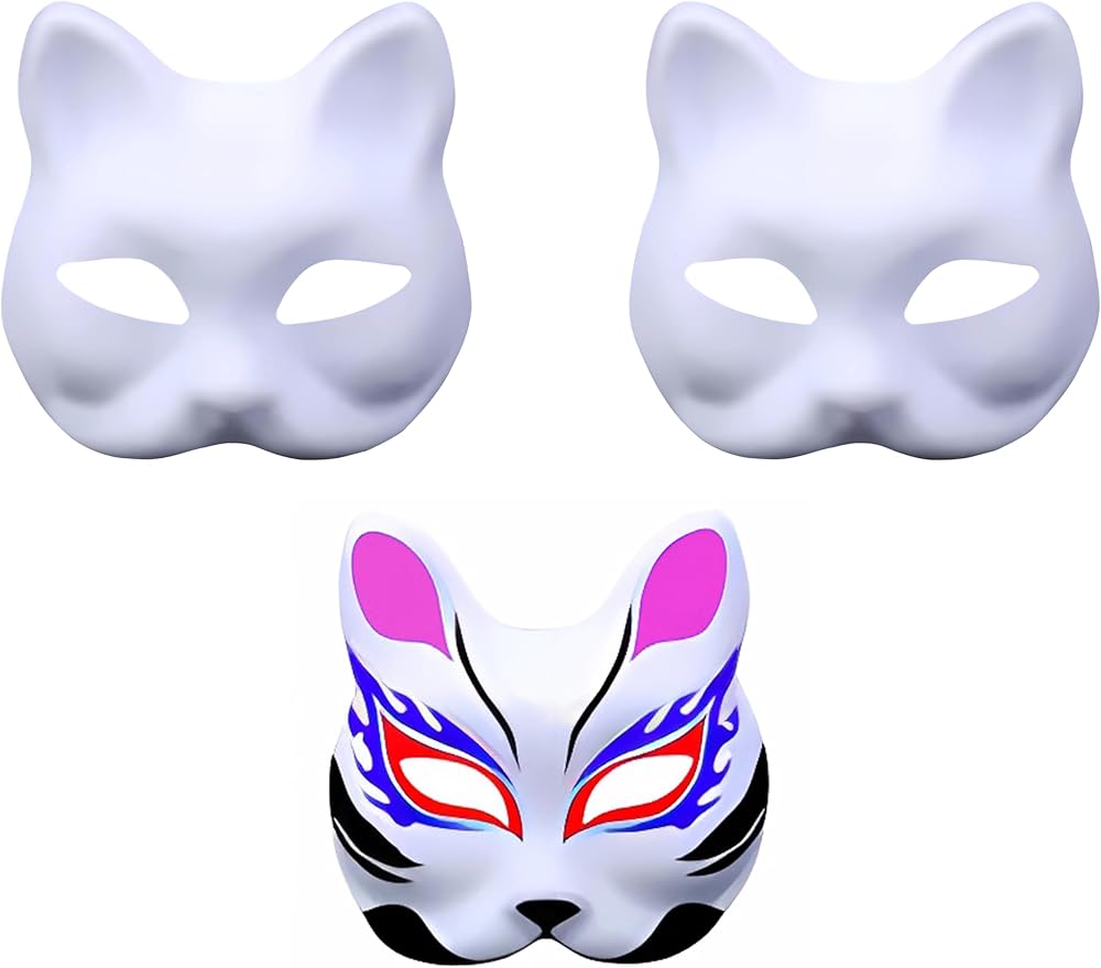 Fox Mask White Blank Paintable Face Mask for DIY Cosplay Masquerade Parties Prop Halloween Costume Party Accessory