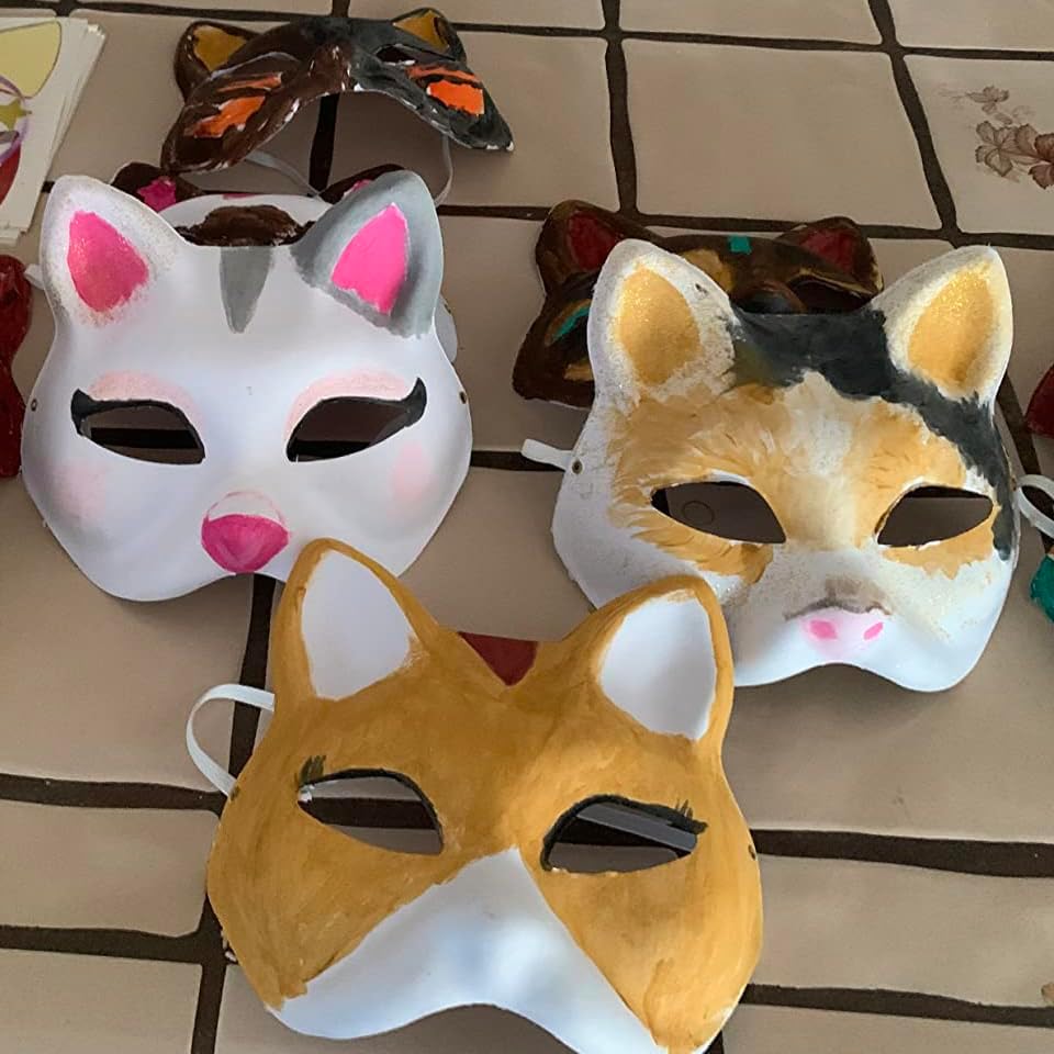 [UNLEASH YOUR IMAGINATION]: You can use acrylic paint and hand drawing pen, felt tips or crayons, and add confetti, gems, rhinestones and feathers to create your own therian Mask.