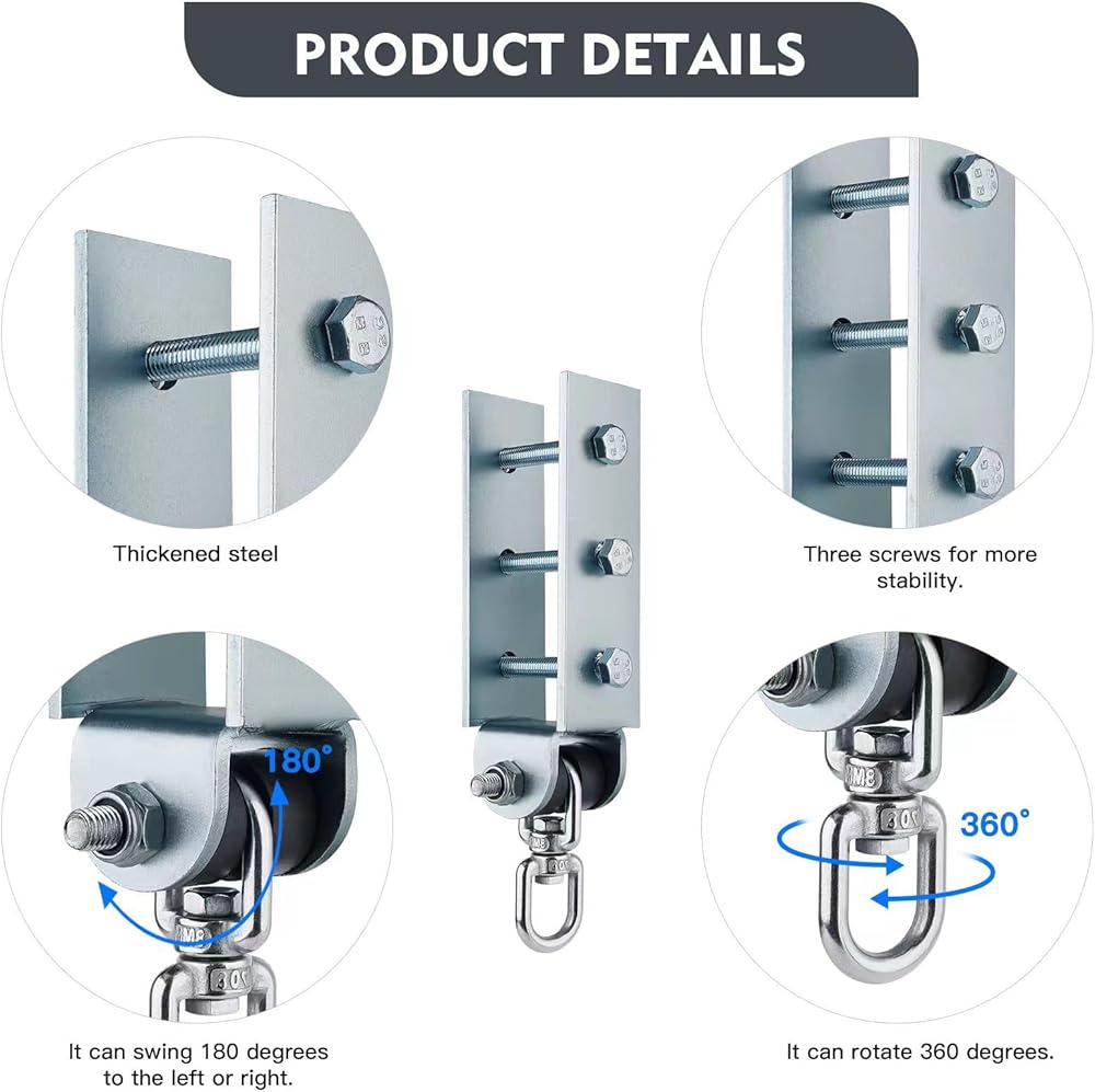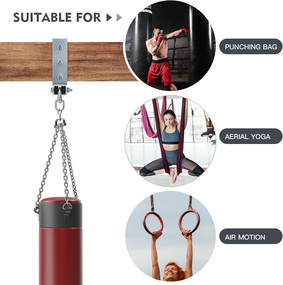 heavy-duty construction; Made of thickened steel, the one-piece design makes it stronger and less deformable, safer when practicing yoga or boxing, versatile, suitable for use in the gym or home, installed on wooden beams, ceilings and square steel above the house for practicing yoga, swing, boxing, saving more space, easy to install, this heavy duty wooden beam hanger has an inner diameter of 2inch and has 3 screw mounting holes, Equipped with 3 sturdy screws and locknut, suitable for most installation scenarios, just easily tighten the screws to complete the installation, perfect design, this wall mounted boxing stand is equipped with a 360° rotating carabiner at the bottom of the bracket, and the bracket and carabiner connection is equipped with a thickened rubber ring, which can reduce noise and prevent shaking, so that you can perform your workout better, if you have any questions or suggestions, please contact us in time, your satisfaction is our top priority.