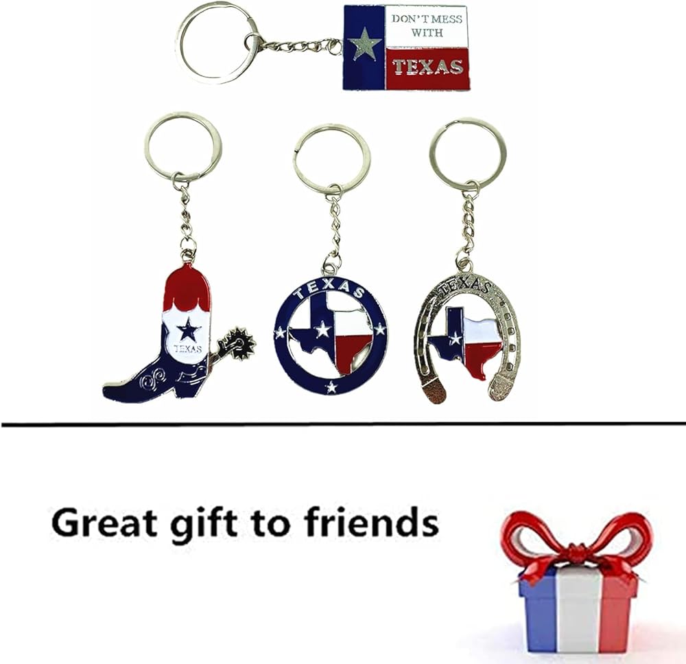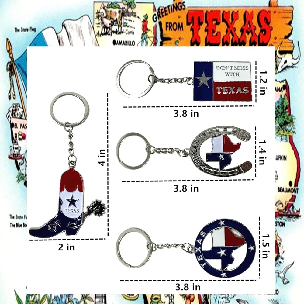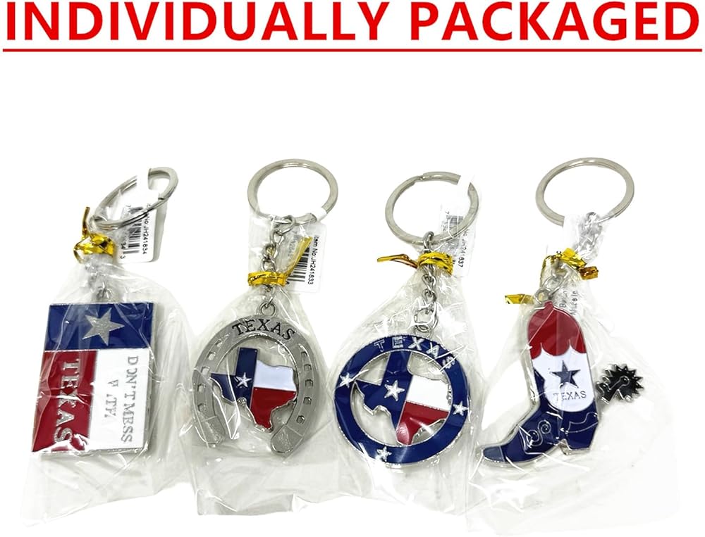 Introducing our pack of 4 Texas-themed keychains, crafted from robust stainless steel for lasting durability. Their compact and lightweight design makes them perfect for everyday use. Each keychain proudly showcases the iconic flag of Texas, boasting vibrant colors and intricate textures. Whether you're a tourist or a patriotic enthusiast, these keychains serve as ideal souvenirs. Add a unique and patriotic touch to your belongings with these beautifully designed accessories, perfect for on-the-go usage.