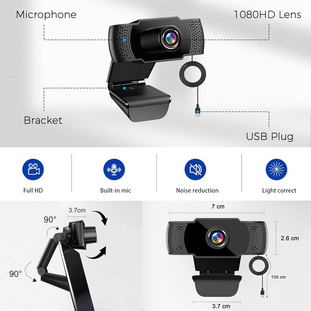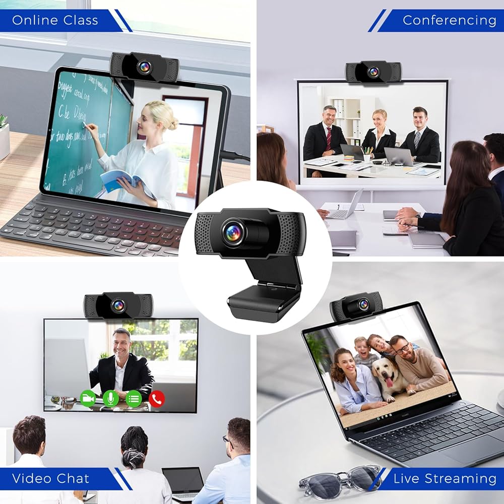 💻كاميرا ويب عالية الدقة 1080P: توفر كاميرا الويب 1080P هذه صورة واضحة وفيديو واضح للغاية، والتي يمكن تشغيلها في الوقت الحقيقي دون تأخير أو تشويه، مما يمنحك صورًا عالية الجودة. باستخدام تقنية الضغط المتقدمة، يكون نقل الصور أكثر استقرارًا وسلاسة. إنه مثالي لعقد مؤتمرات فيديو عالية الجودة، ويمكنك بسهولة بدء مؤتمرات الفيديو ومكالمات الدردشة مع زملائك.