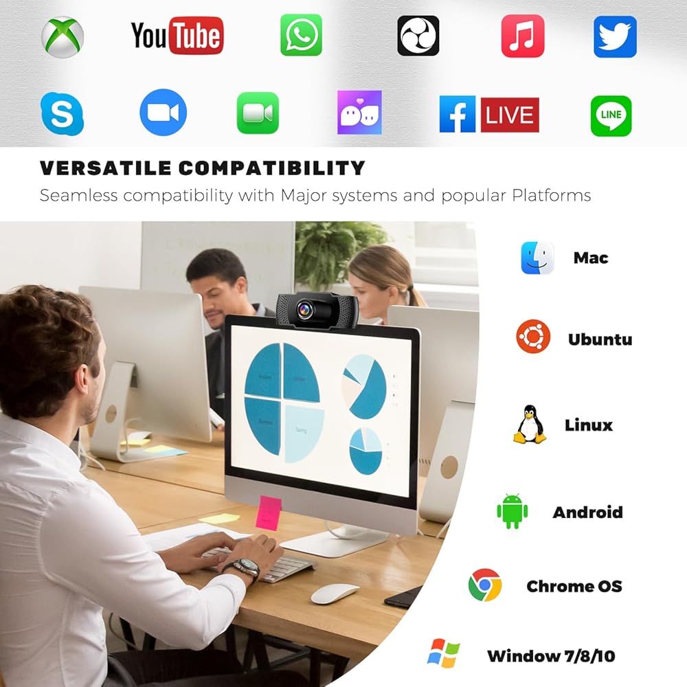 💻 توافق واسع: توفر كاميرا الويب المحمولة هذه توافقًا واسعًا. وهو يدعم نظام التشغيل Windows XP/7/8/10 وما إلى ذلك. وهو مناسب جدًا للدراسة والعمل عبر الإنترنت وعقد المؤتمرات والألعاب ومكالمات الفيديو والتسجيل. متوافق مع Skype وZoom وFacetime وFacebook وYouTube وغيرها من منصات المجتمع الرئيسية.