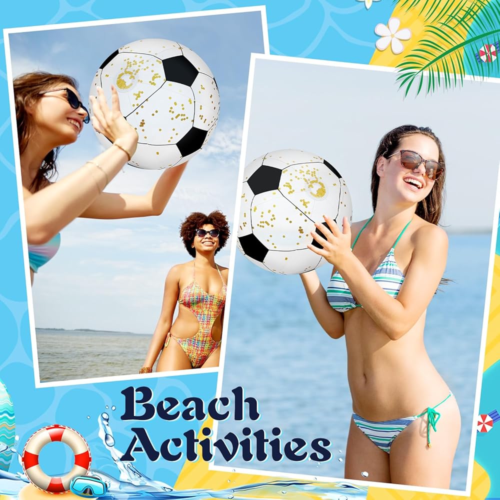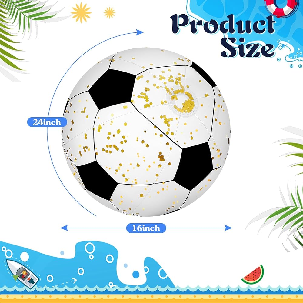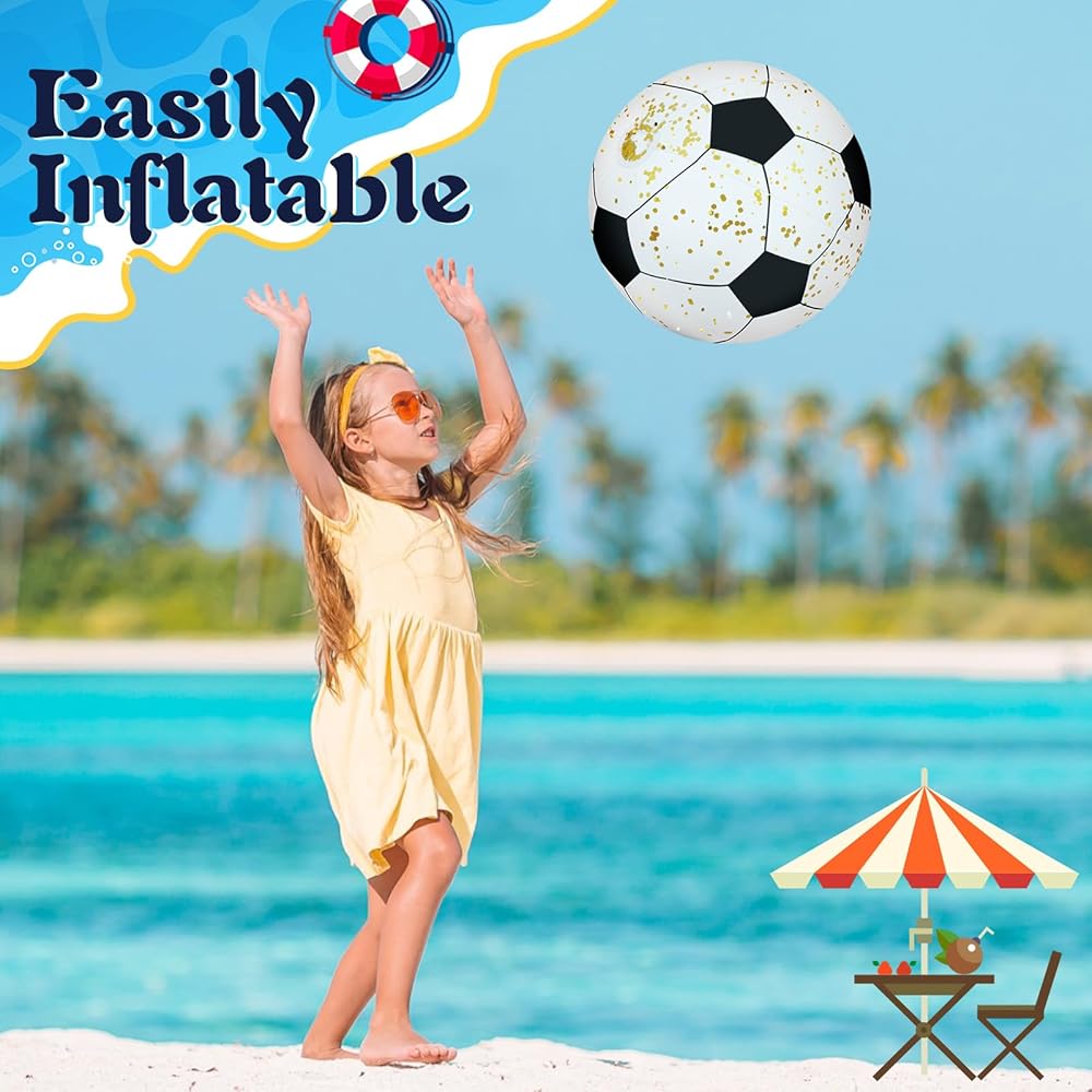 تصميم شفاف ولامع بالترتر: كرات الشاطئ الشفافة الخاصة بنا تضفي لمسة فريدة على متعة الهواء الطلق؛ اللون الشفاف يسمح لك برؤية الترتر الذهبي اللامع بالداخل، مما يضيف شعورًا لامعًا إلى أي لعبة أو حفلة حمام السباحة؛ دع لحظاتك المليئة بالمرح تتألق مع المزيد من اللمعان، بفضل كرات الشاطئ الشفافة الخاصة بنا
