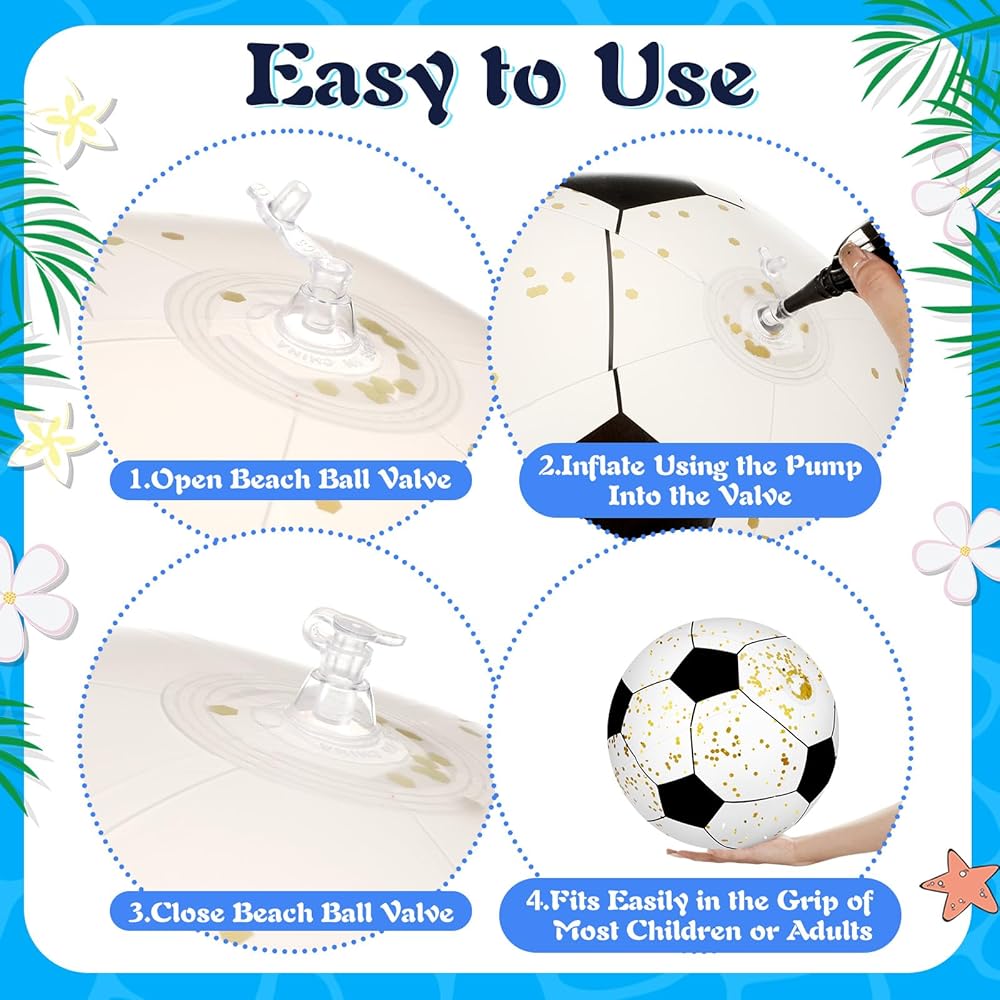 قابلة للنفخ بسهولة: لا داعي للقلق بشأن استغراق الاستعدادات للحفلات وقتًا طويلاً، فهذه الكرات الشاطئية القابلة للنفخ سهلة النفخ والتفريغ، مما يوفر لك الوقت والطاقة؛ افتح الصمام واستخدم مضخة يدوية (غير متضمنة)، أو قم بنفخ الهواء من خلال فمك؛ يمكن أن يبقى الختم المحكم محكم الغلق لعدة أيام دون أن يتسرب؛ عند عدم الاستخدام، يمكن تفريغ كرة الشاطئ من الهواء لسهولة التخزين