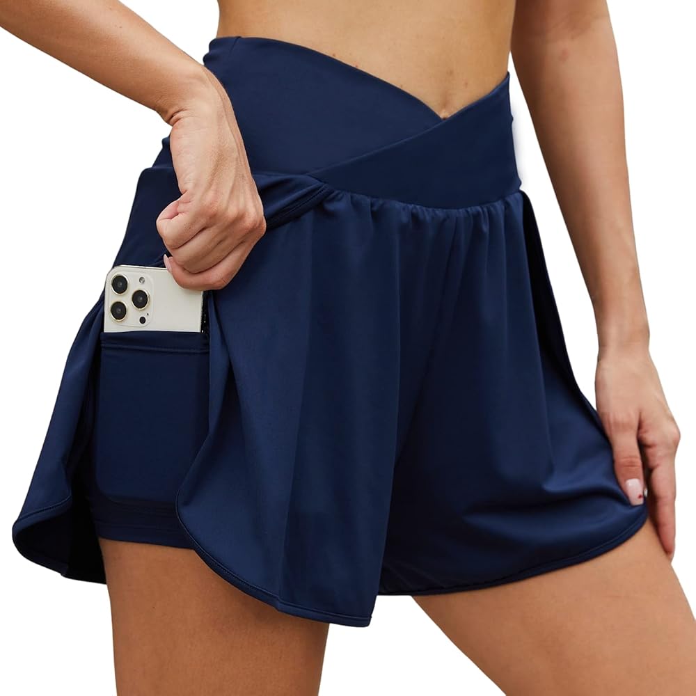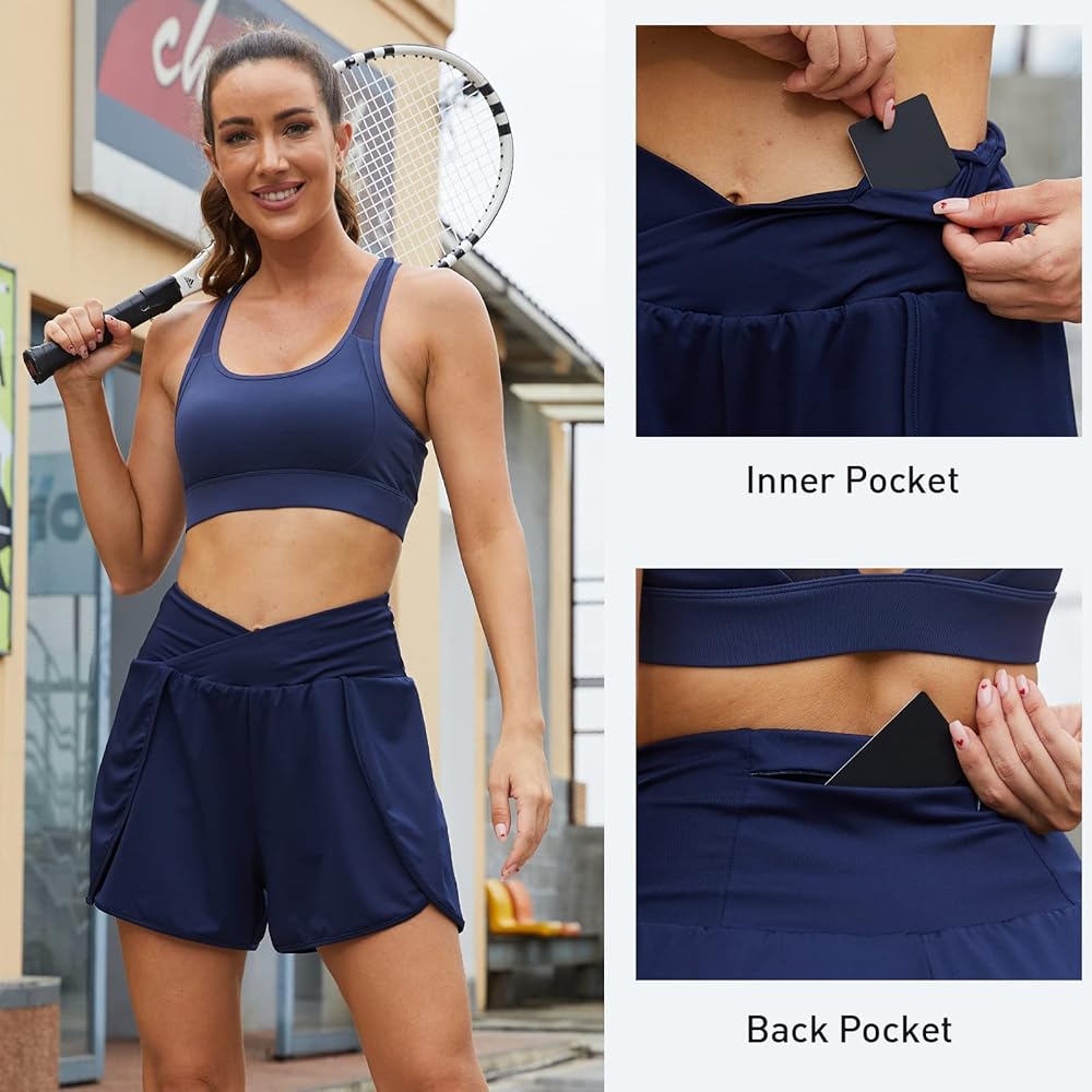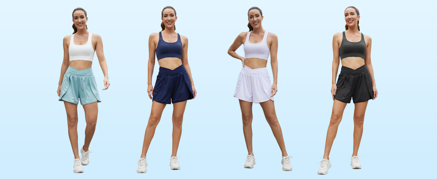 تصميم 2 في 1: يوفر شورت التمرين مع ضغط مطاطي سلس في 4 اتجاهات تغطية آمنة مما يسمح لك بالتمرين بشكل أكثر أمانًا وحرية. يمكنك القيام بتمارين مختلفة بثقة دون تعريض جسمك.