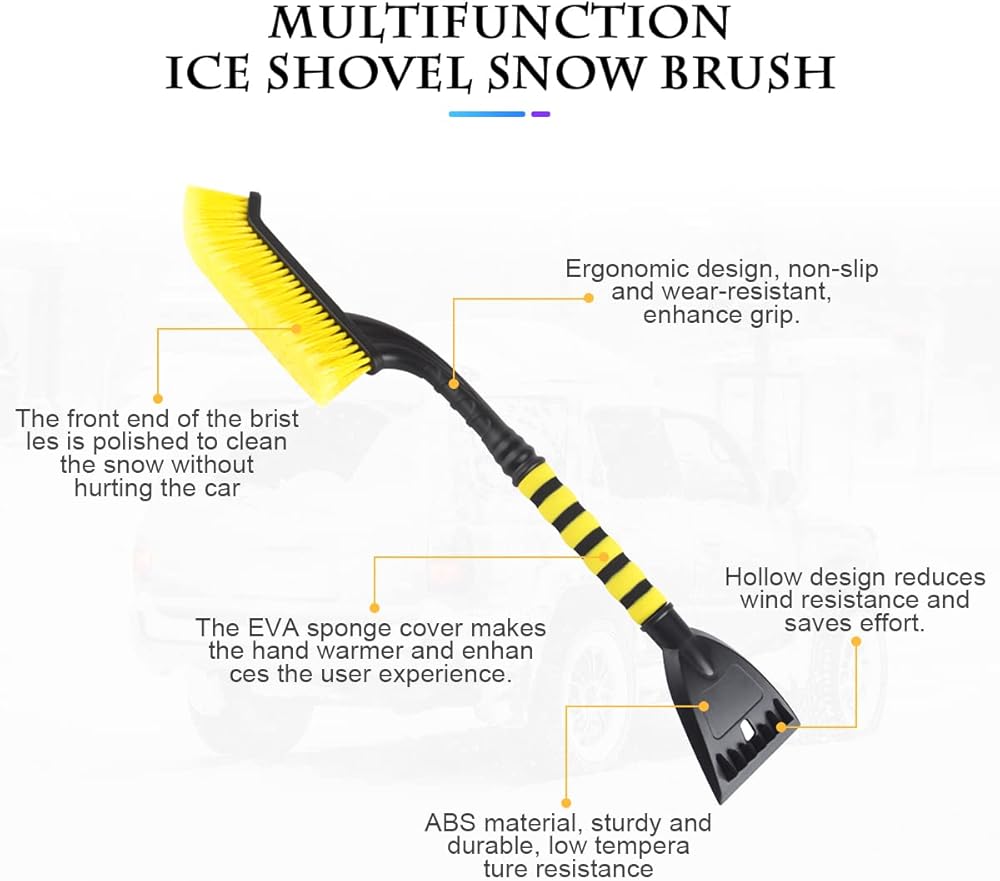 • [Snow & Ice Removal Tool] Always need to spend time cleaning snow and ice in car windshield in winter morning, and you find it waste of time because it's hard to remove. This tool can quickly brush off the snow and scrape the ice without damaging car winshield surface, effectively save your time and protect car well.