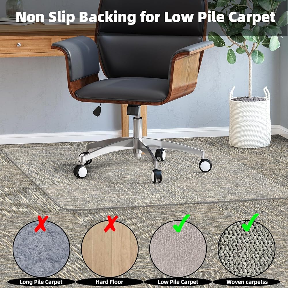 🥇Protect Low Pile Carpet: The Lebata office chair mat for carpet is specifically designed to provide the ultimate protection for your low pile or flat pile carpet from everyday wear and tear caused by rolling casters. This computer chair mat for carpet won't crack or shatter while protecting your carpeted floors.Do not use on wood or other hard floors because it can scratch them.