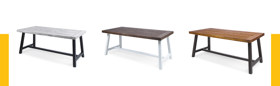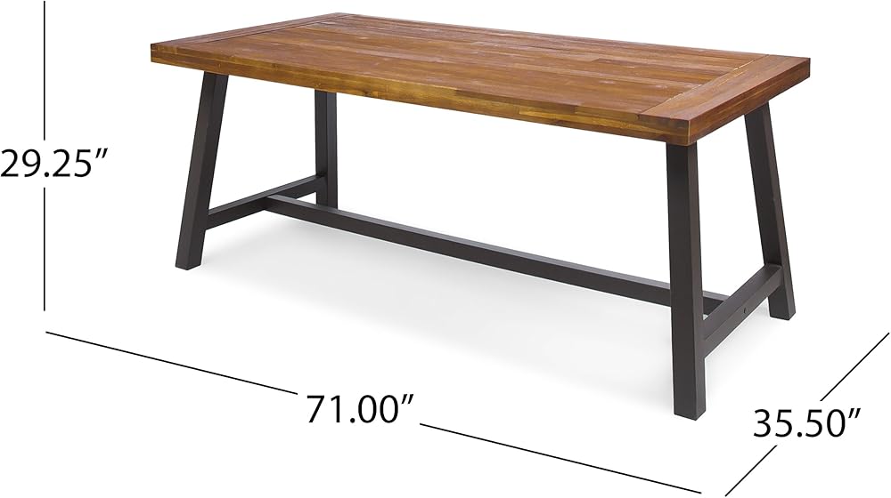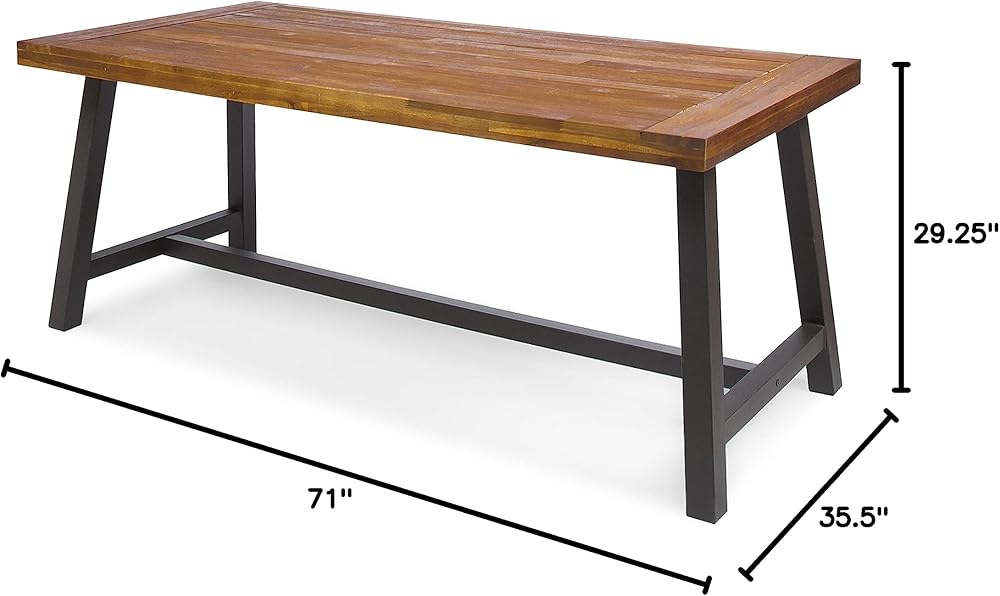 مصنوعة من خشب الأكاسيا المستدام والحديد القوي، طاولة الطعام الريفية هذه هي الإضافة المثالية إلى الفناء الخلفي أو الفناء أو الحديقة.