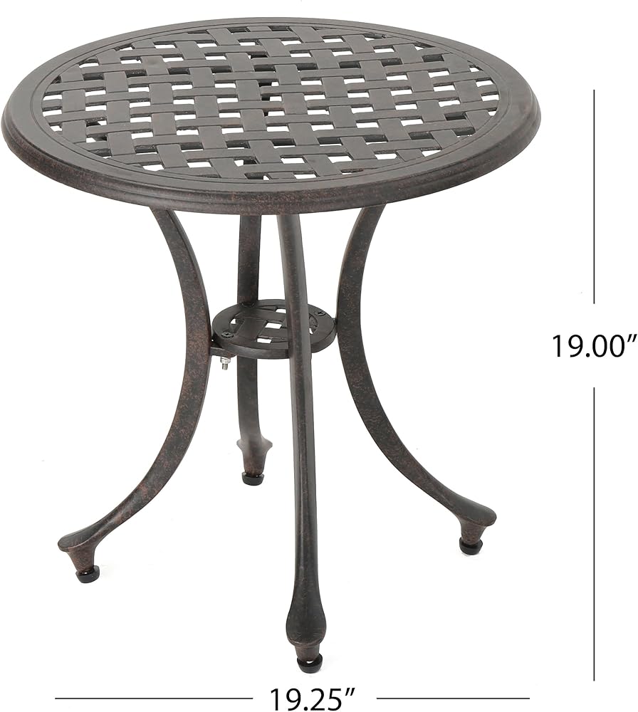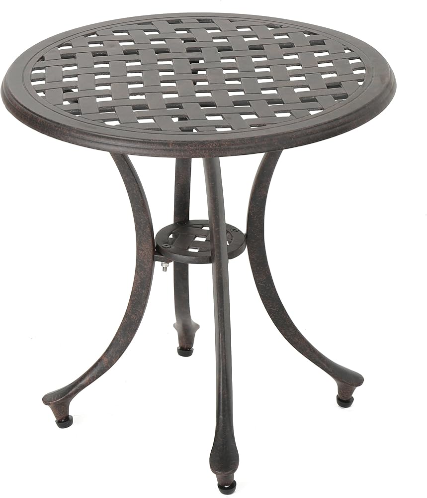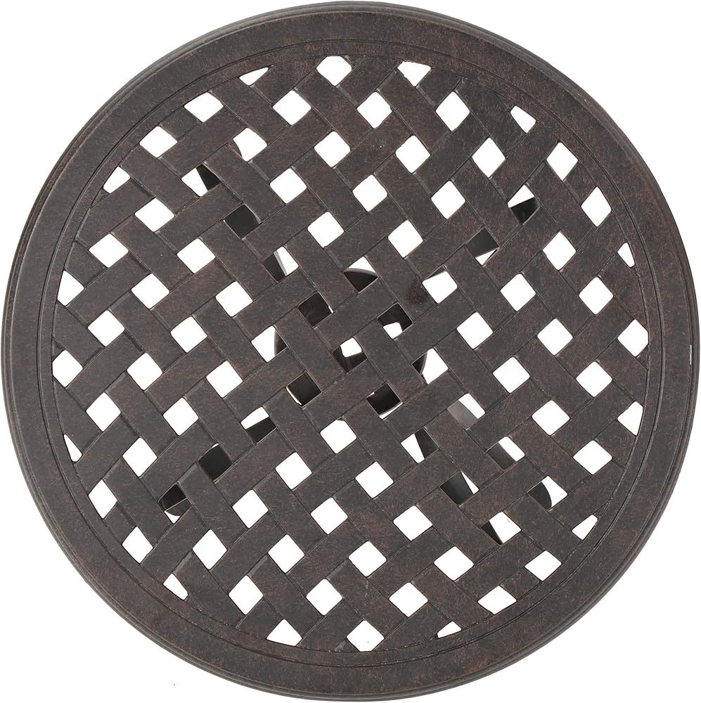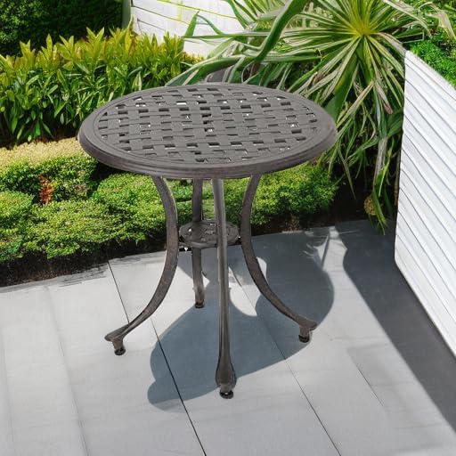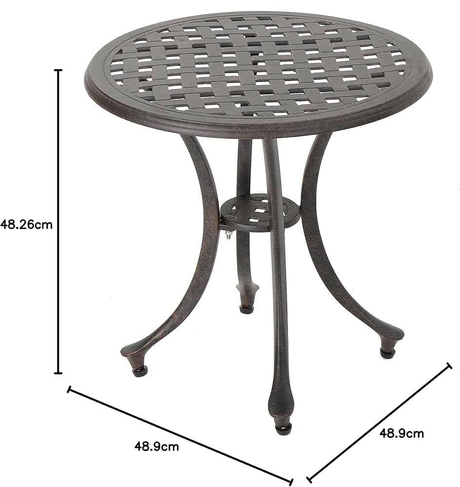 قطعة كلاسيكية، هذه الطاولة الجانبية المصنوعة من الألومنيوم المصبوب مثالية للفناء أو الفناء الخلفي أو الحديقة. متينة وسهلة الحركة، وستحصلين على سنوات من الاستخدام من هذا المنتج. مثالية للترفيه أو الاسترخاء في الخارج مع الأصدقاء والعائلة