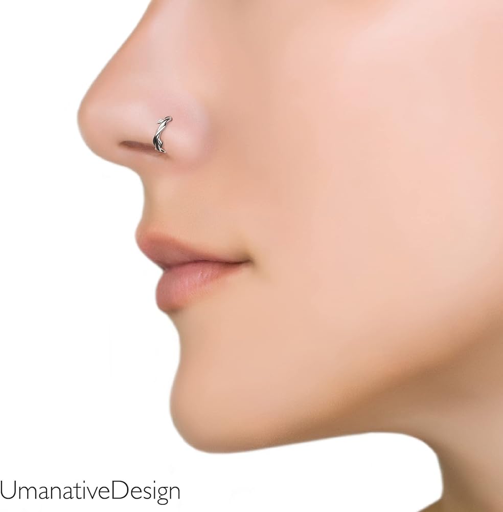 حلزون حلزوني مضفر، حلق غضروف أوراق إغريقية ملتوية، مجوهرات ثقب بوهو مصنوعة يدويًا من Umanative (الفضة الاسترلينية)