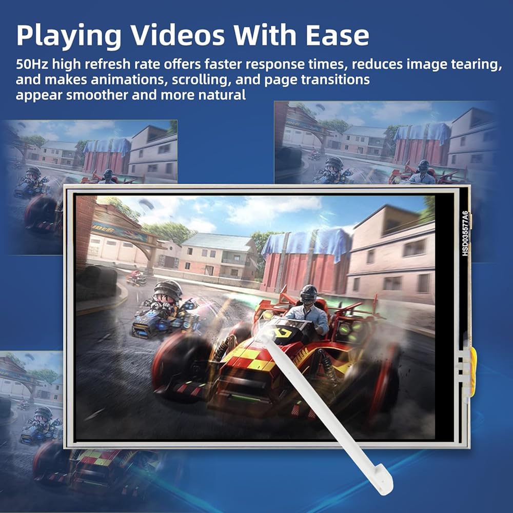 【شاشة سلسة】تدعم شاشة اللمس إدخال إشارة SPI بسرعة 125 ميجاهرتز لأداء مستقر وخالي من الوميض. عند استخدامه مع Raspberry Pi، فإنه يحقق معدل تحديث يبلغ حوالي 50 هرتز، مما يلبي الاحتياجات اليومية لتشغيل الفيديو والألعاب. إنه يتصل من خلال SPI، ويدعم برامج تشغيل برنامج FBCP، ويتيح عرض الشاشة المزدوجة، ويسمح بتعديلات دقة البرنامج للقياس.